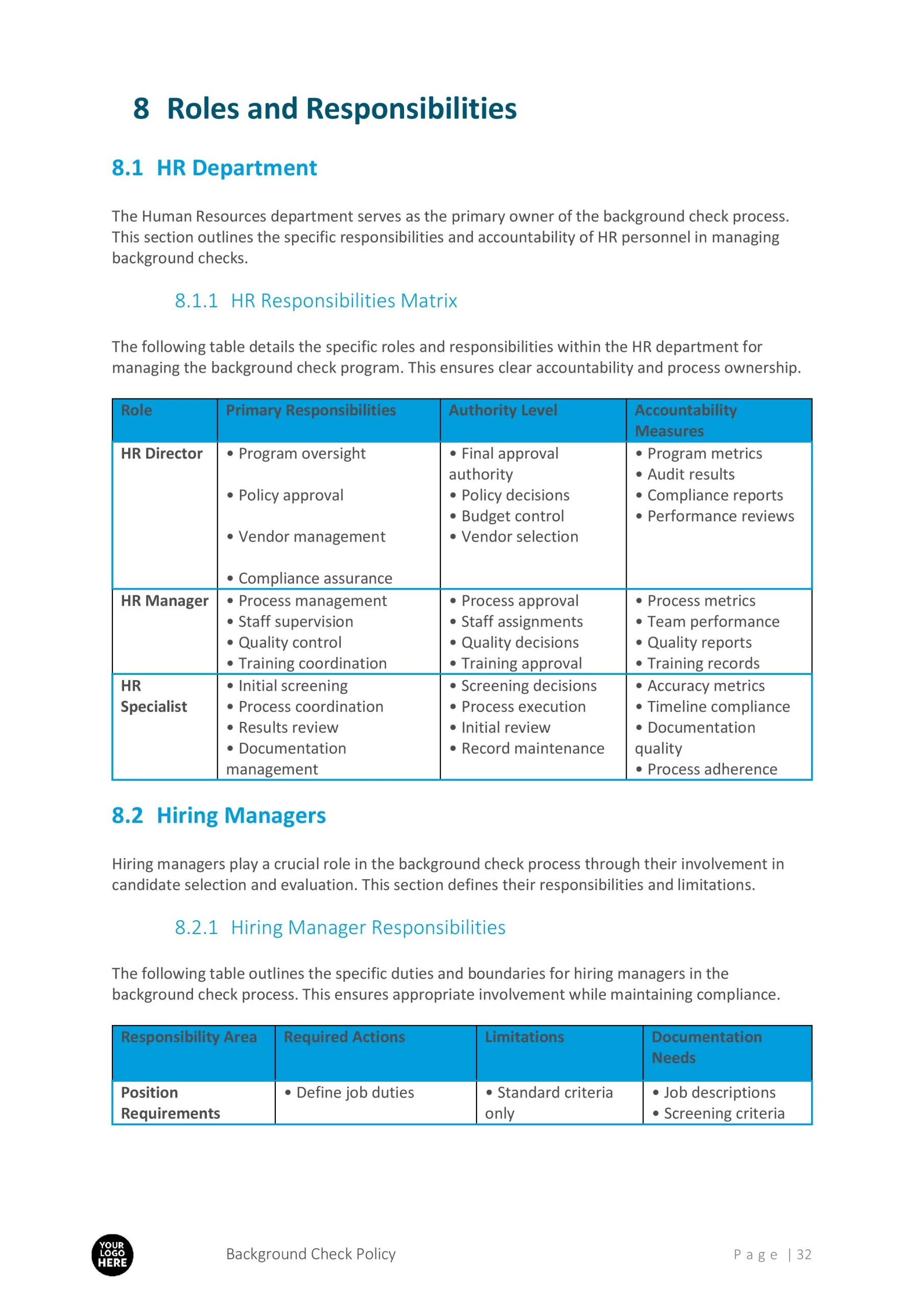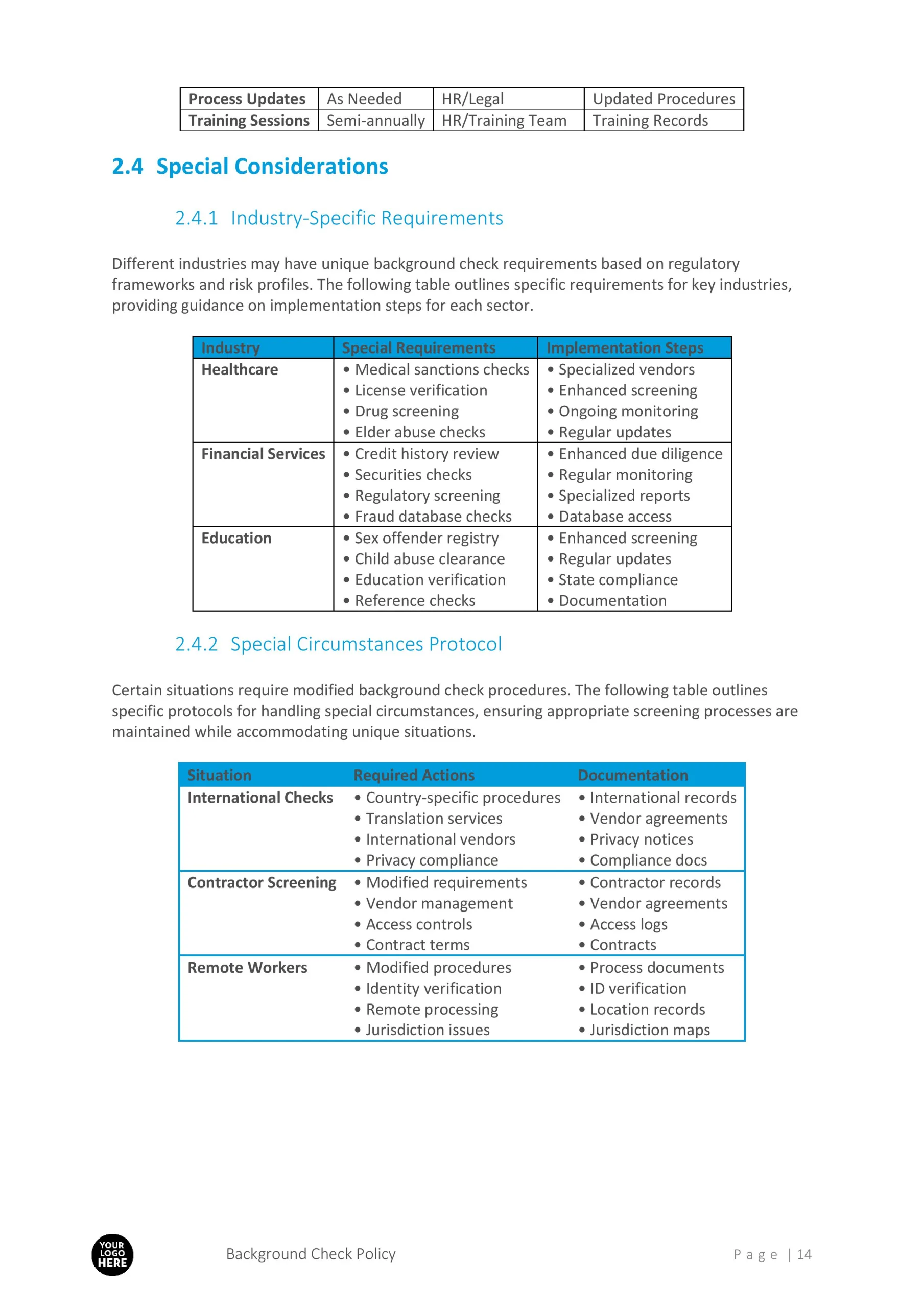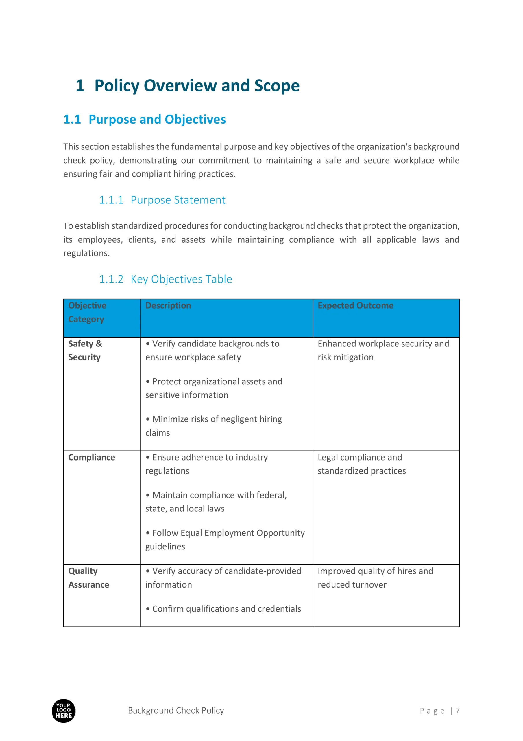 Developed by industry experts, this template covers all essential aspects of a robust background check policy, ensuring compliance with relevant laws and regulations. It provides detailed sections on the scope of background checks, the types of information to be verified, the criteria for evaluation, and the procedures for maintaining confidentiality and data privacy.