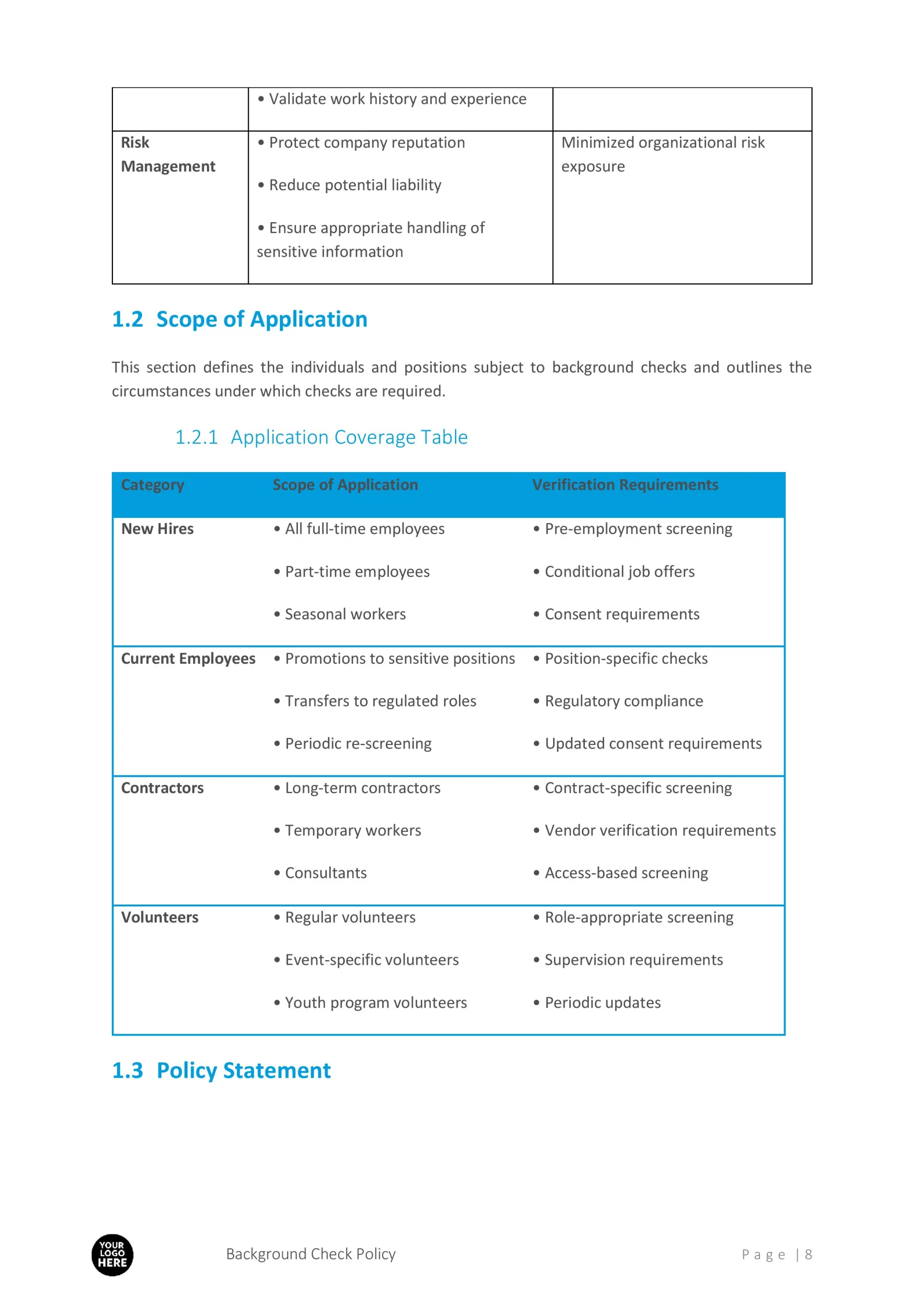 Introducing our comprehensive Background Check Policy template, a meticulously crafted document designed to streamline your organization’s screening processes. This downloadable Word document offers a comprehensive framework for establishing clear guidelines and procedures for conducting thorough background checks on potential employees, contractors, and volunteers.