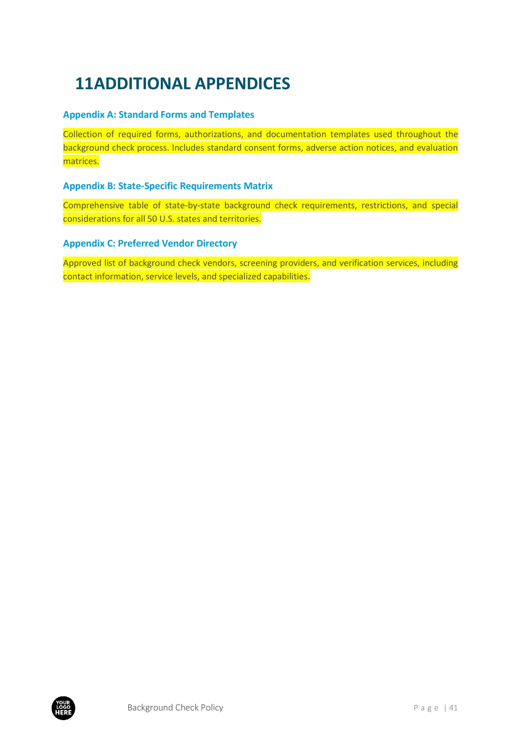 6. Customizable sections to tailor the policy to your organization’s specific needs, industry, and local regulations.