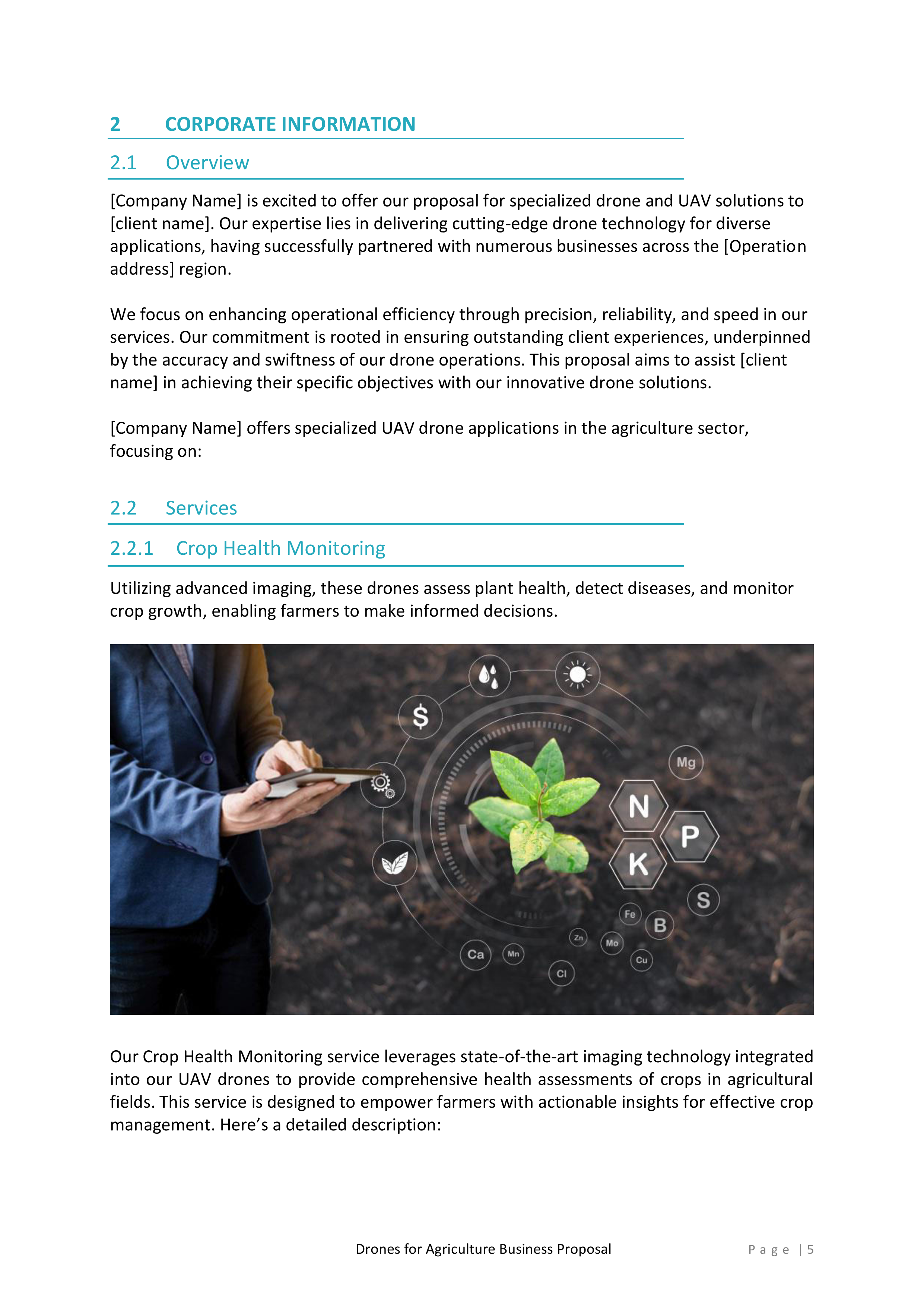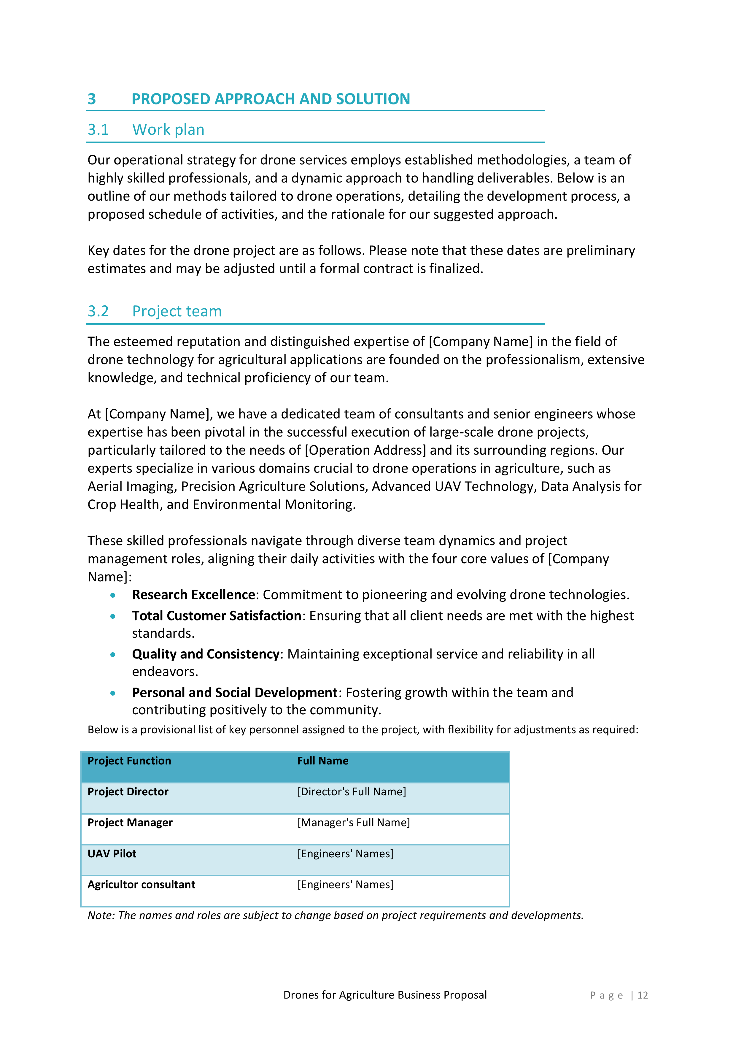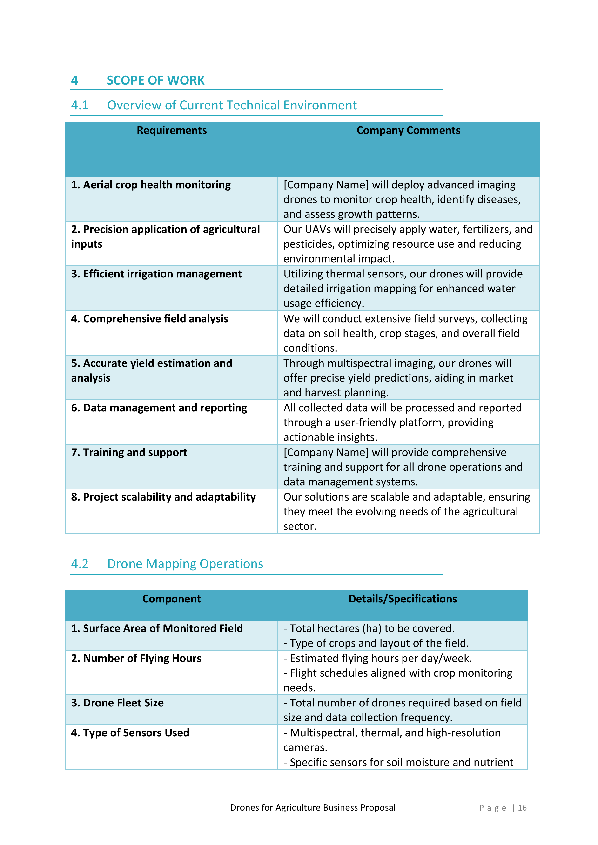 The proposal template has the finest written paragraphs that allow you to introduce your company, experience, services, team profile, and references in a professional manner. What the user will customize, will be their organization addressing the scope of work, the timeline of the project, and pricing if needed.