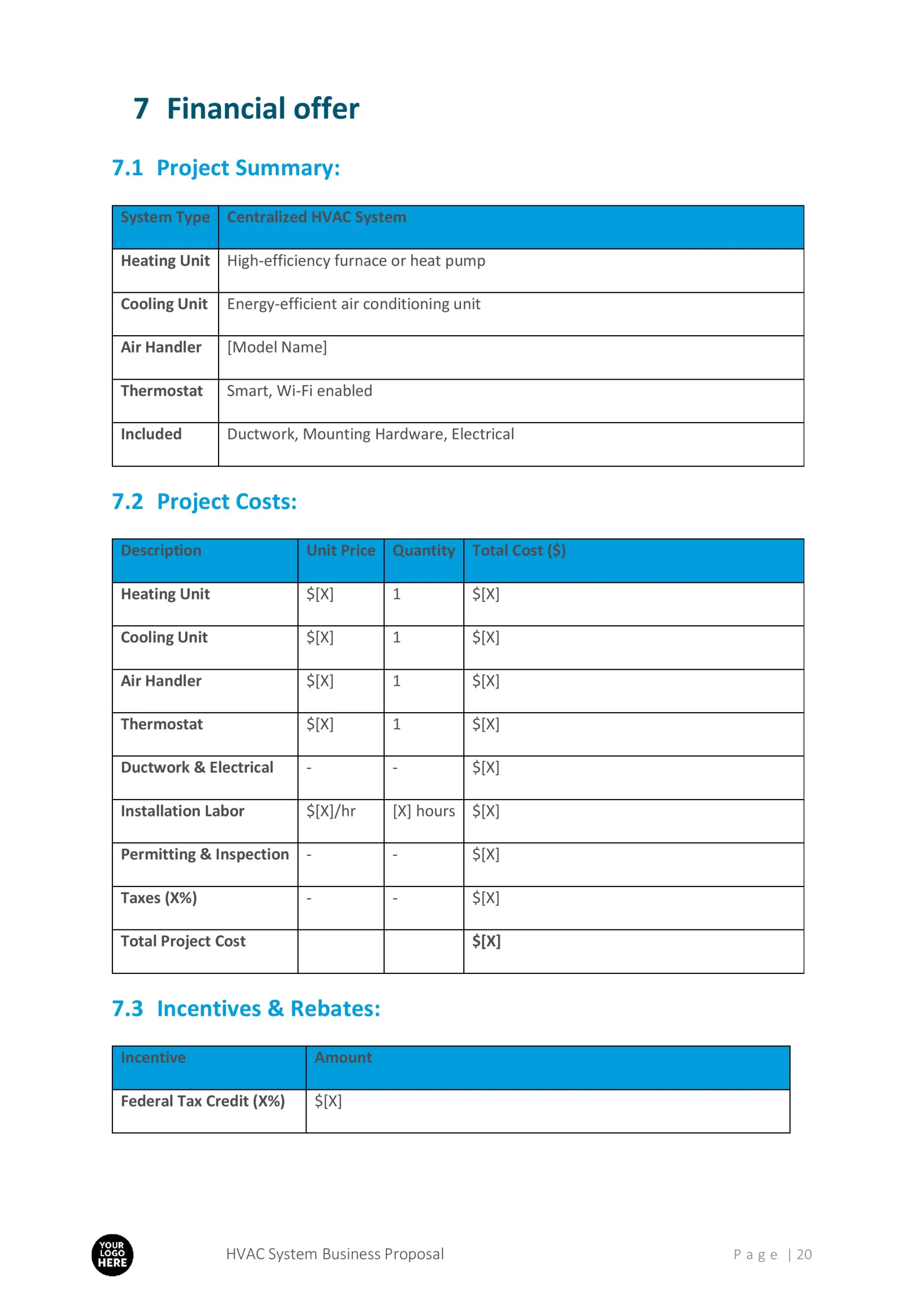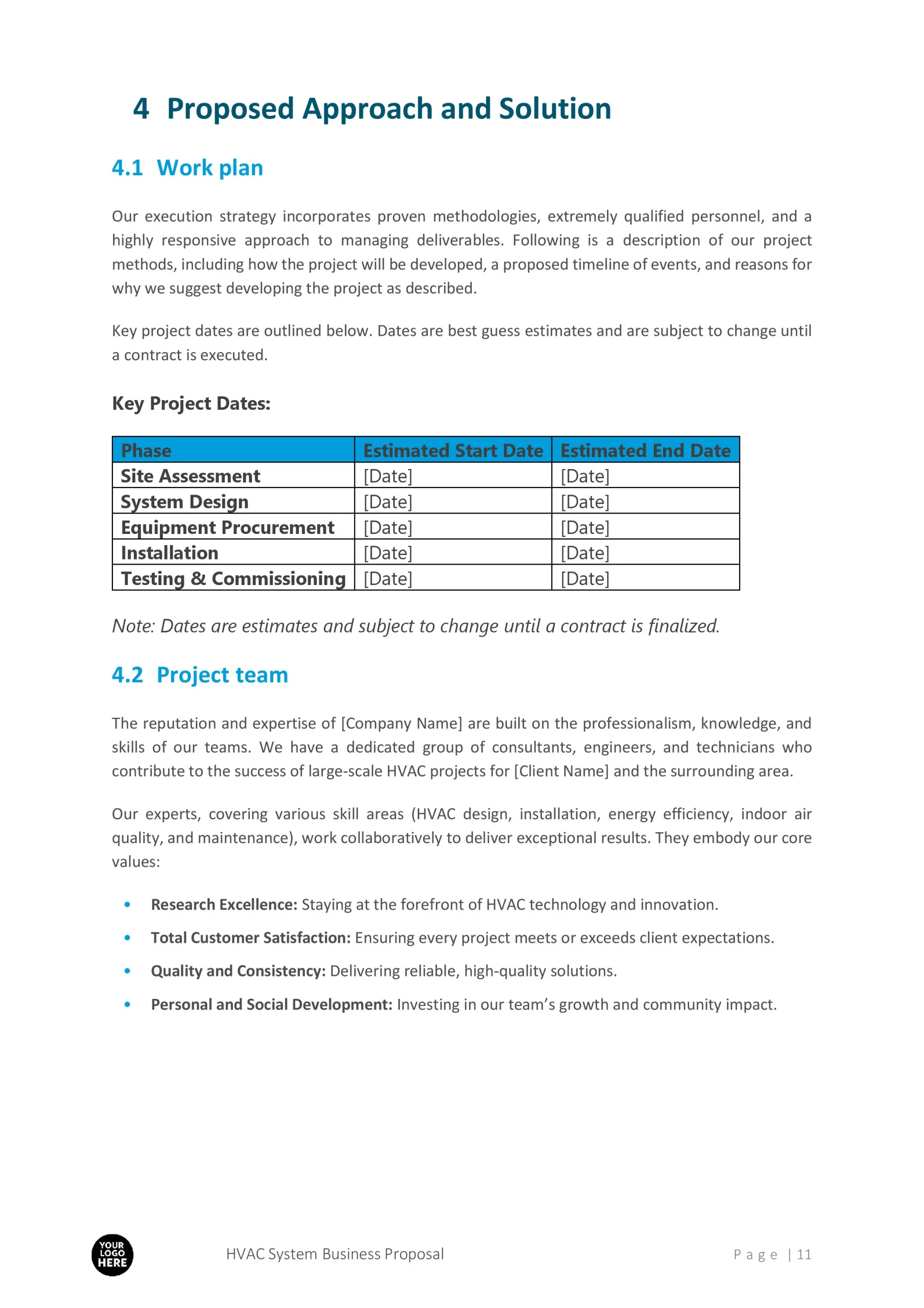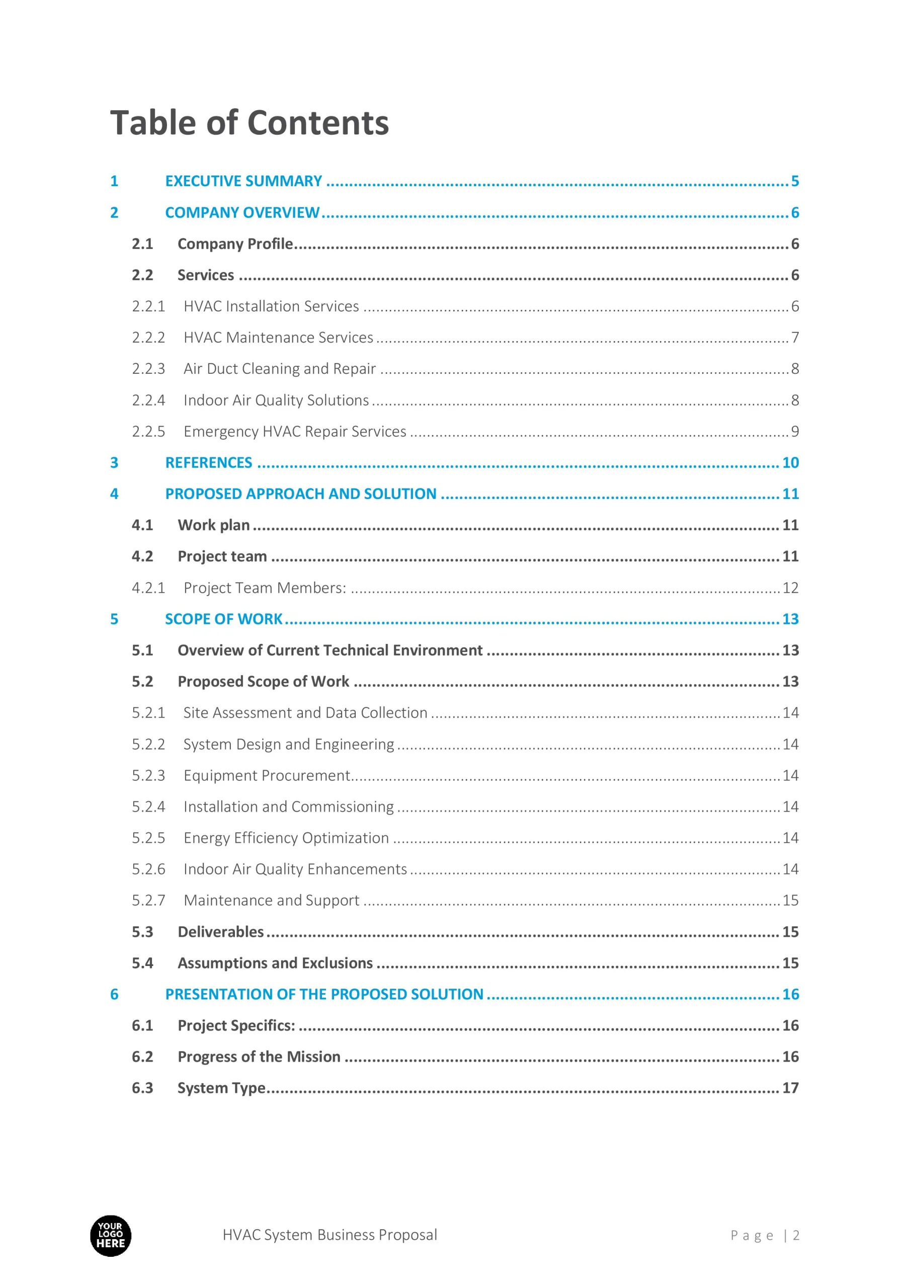 Furthermore, our proposal template provides ample space to showcase your team’s qualifications, certifications, and past projects. By including this information, you can instill confidence in your clients and demonstrate your ability to handle any HVAC installation or maintenance project.