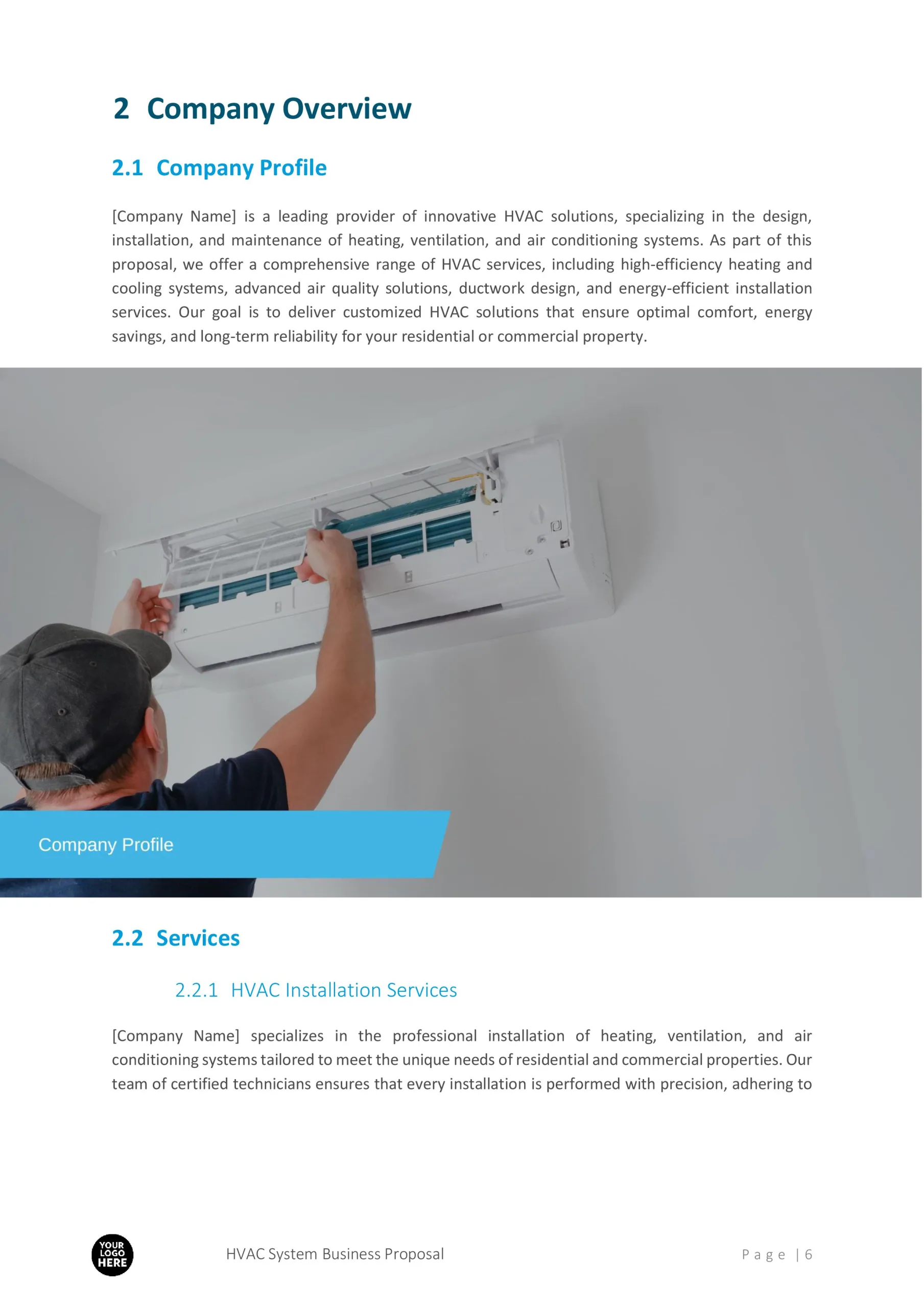 Crafted with precision and attention to detail, our proposal template offers a sleek and modern design that will leave a lasting impression on your potential clients. With its user-friendly format, you can easily customize the template to match your brand identity and showcase your expertise in the HVAC industry.