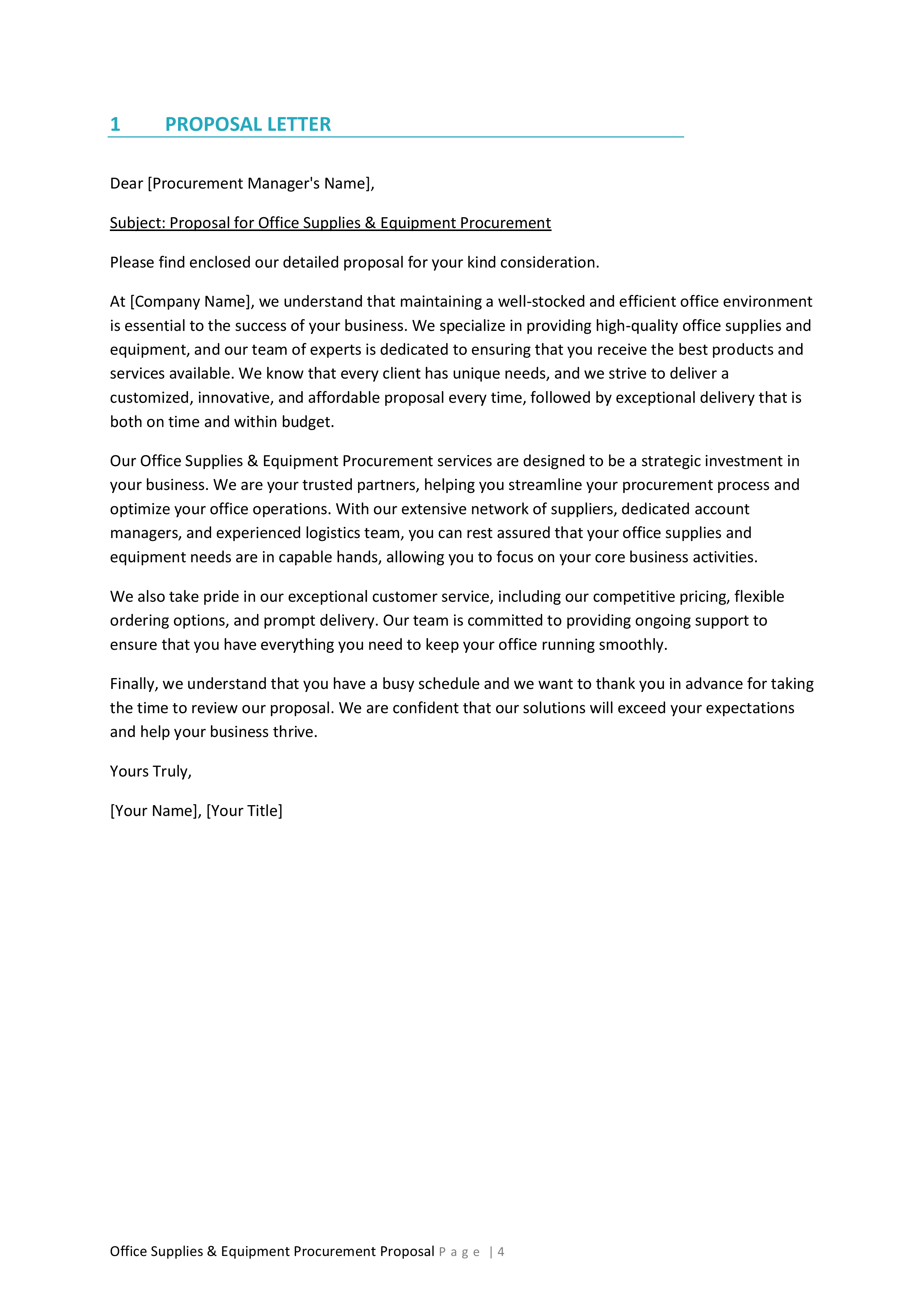 Introducing our Office Supplies & Equipment Procurement Proposal Template, a comprehensive and user-friendly Word Document that will revolutionize the way you create business proposals.