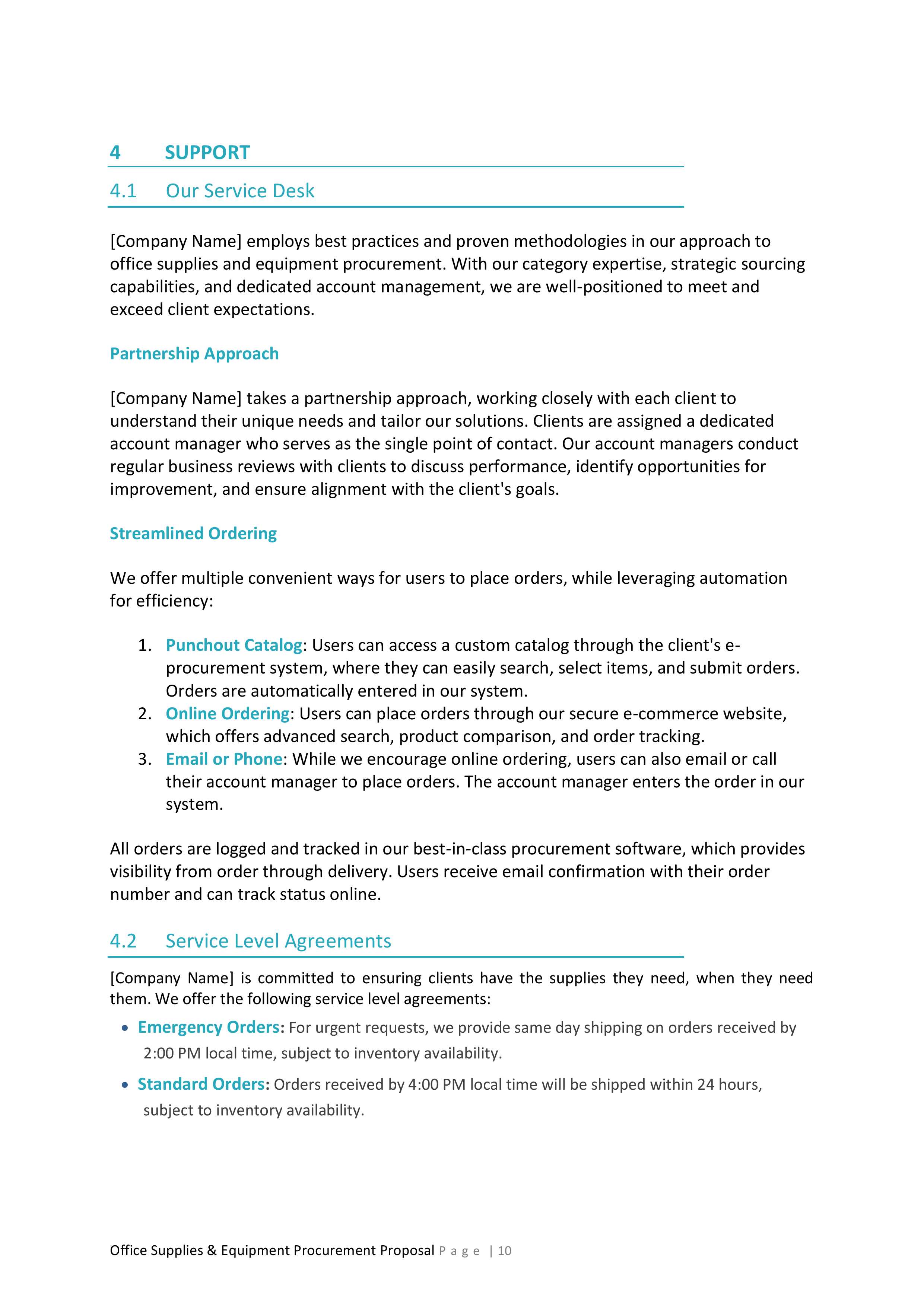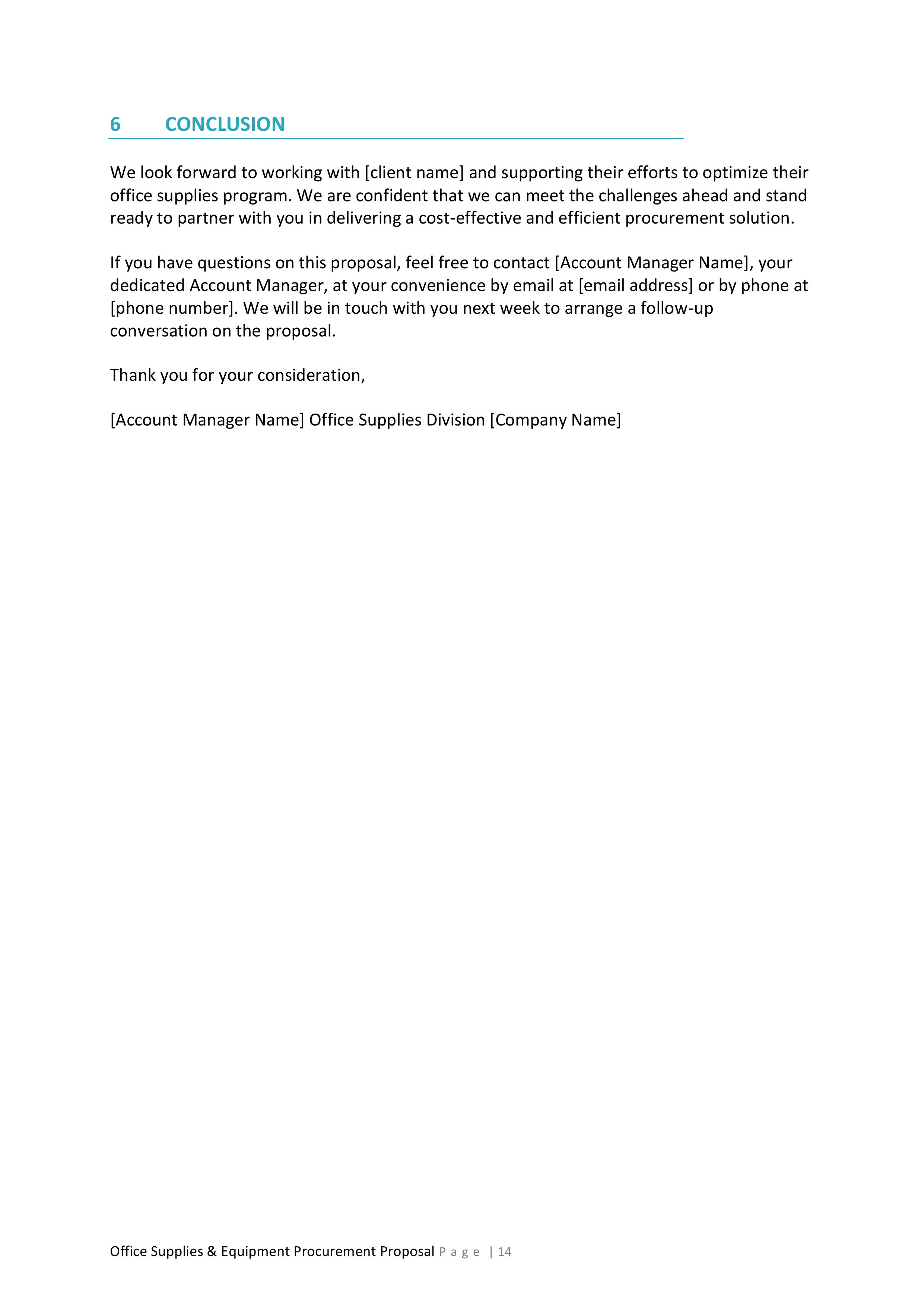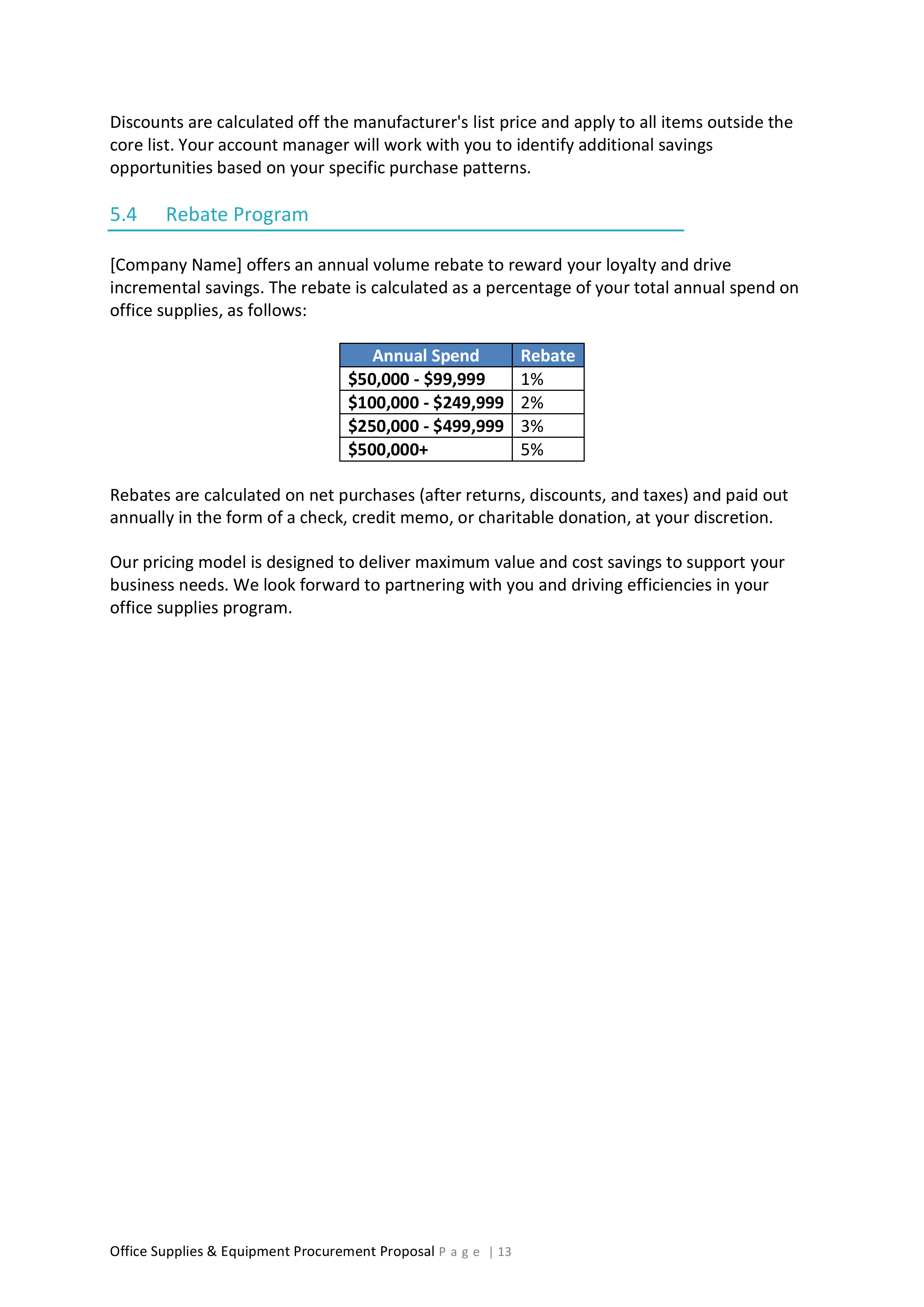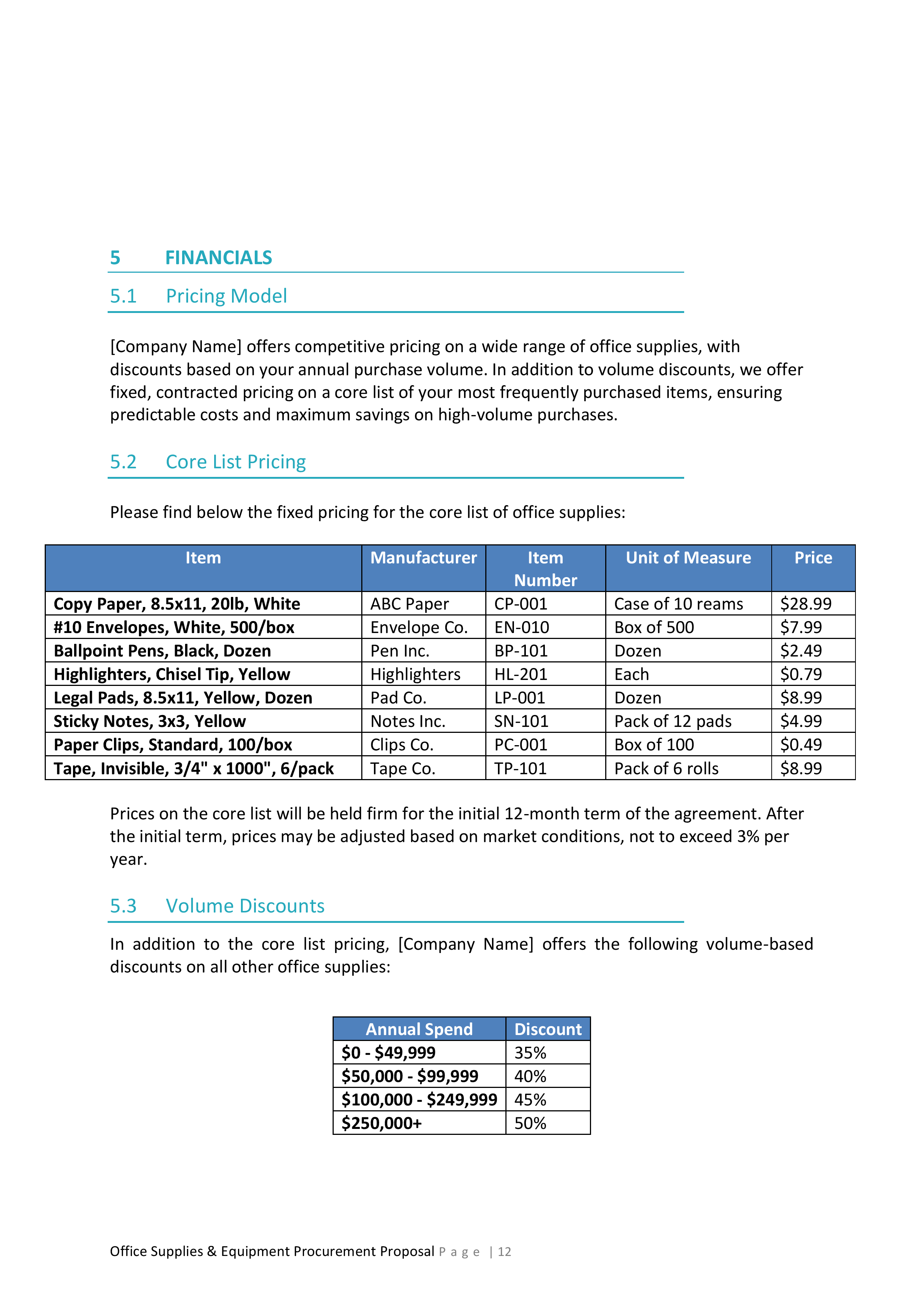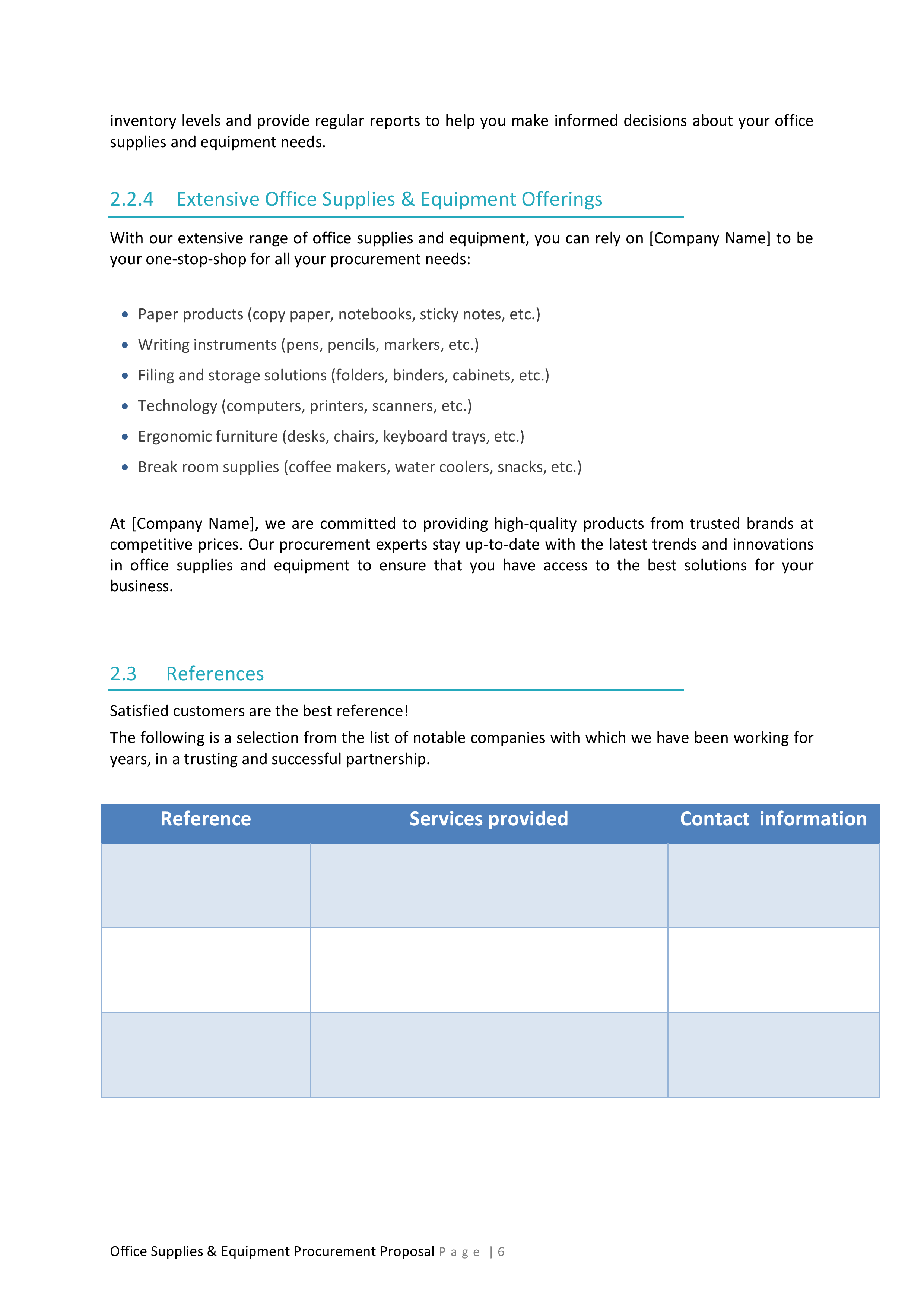 But that’s not all. Our Office Supplies & Equipment Procurement Proposal Template also includes a comprehensive pricing table, allowing you to present your pricing options in a clear and organized manner. Whether you offer different packages or have tiered pricing, our template has got you covered.