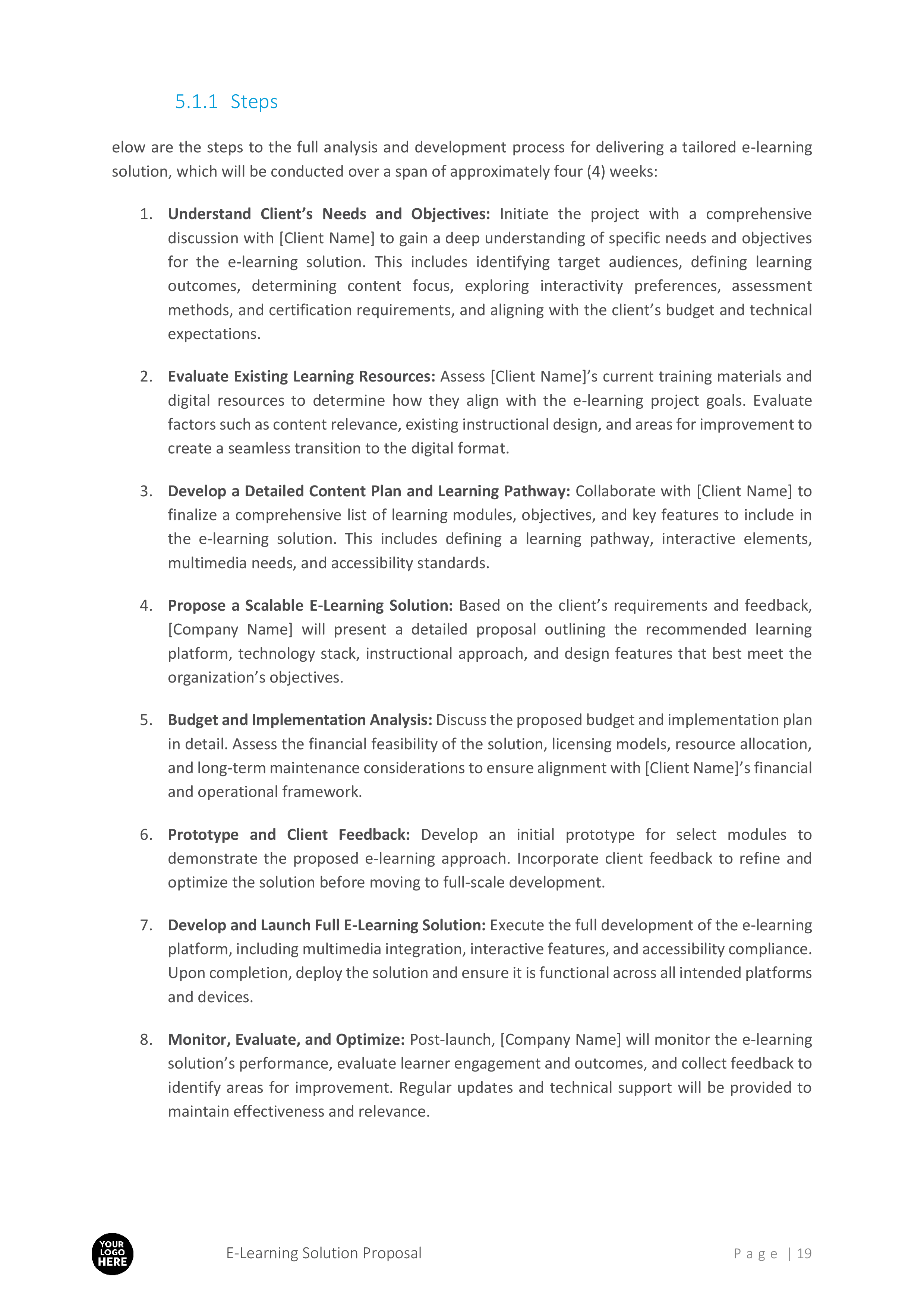Professionally structured and fully editable, this document is tailored to meet the diverse needs of e-learning projects while providing a polished, client-ready presentation.