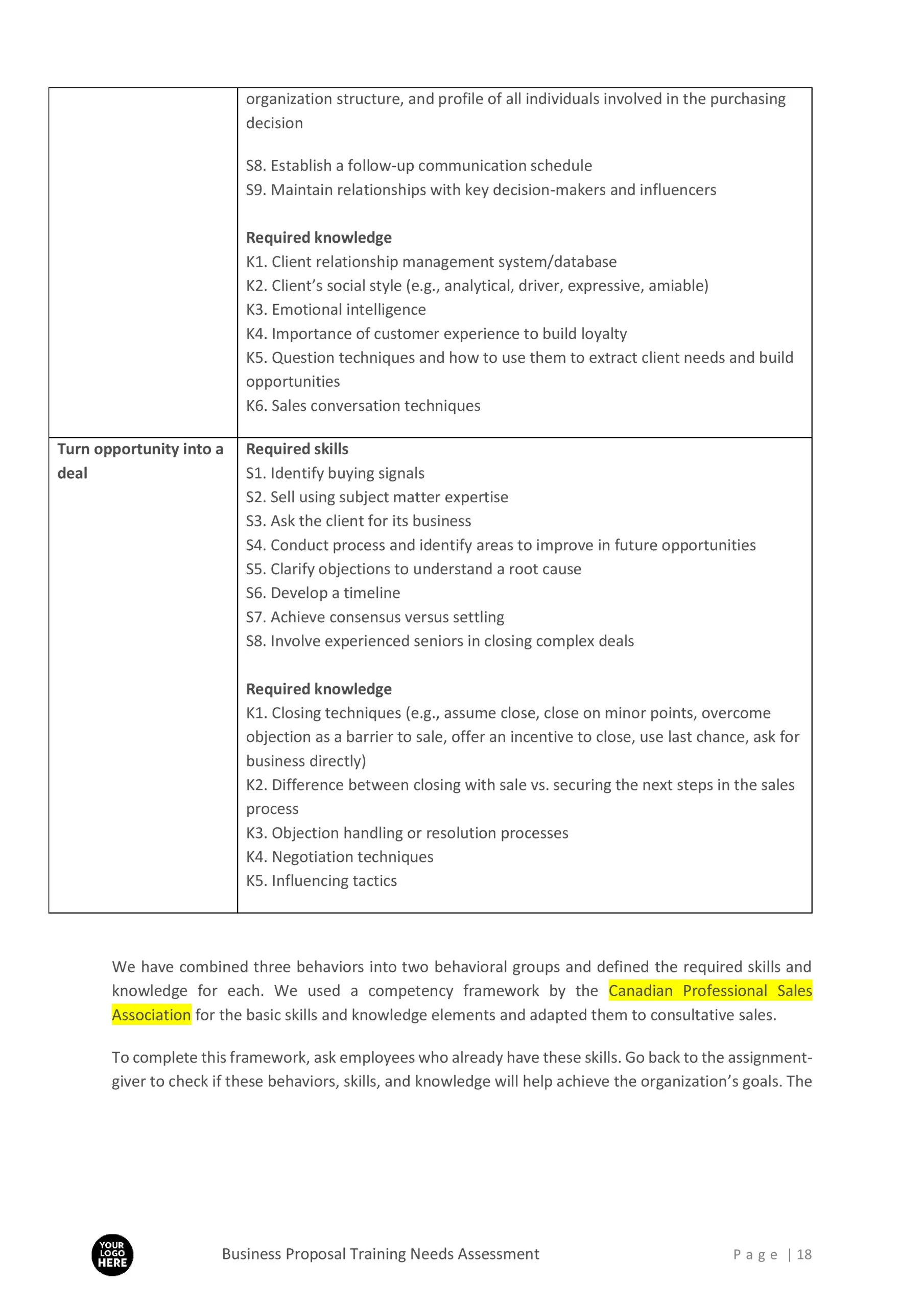 Training Needs Assessment Proposal Template