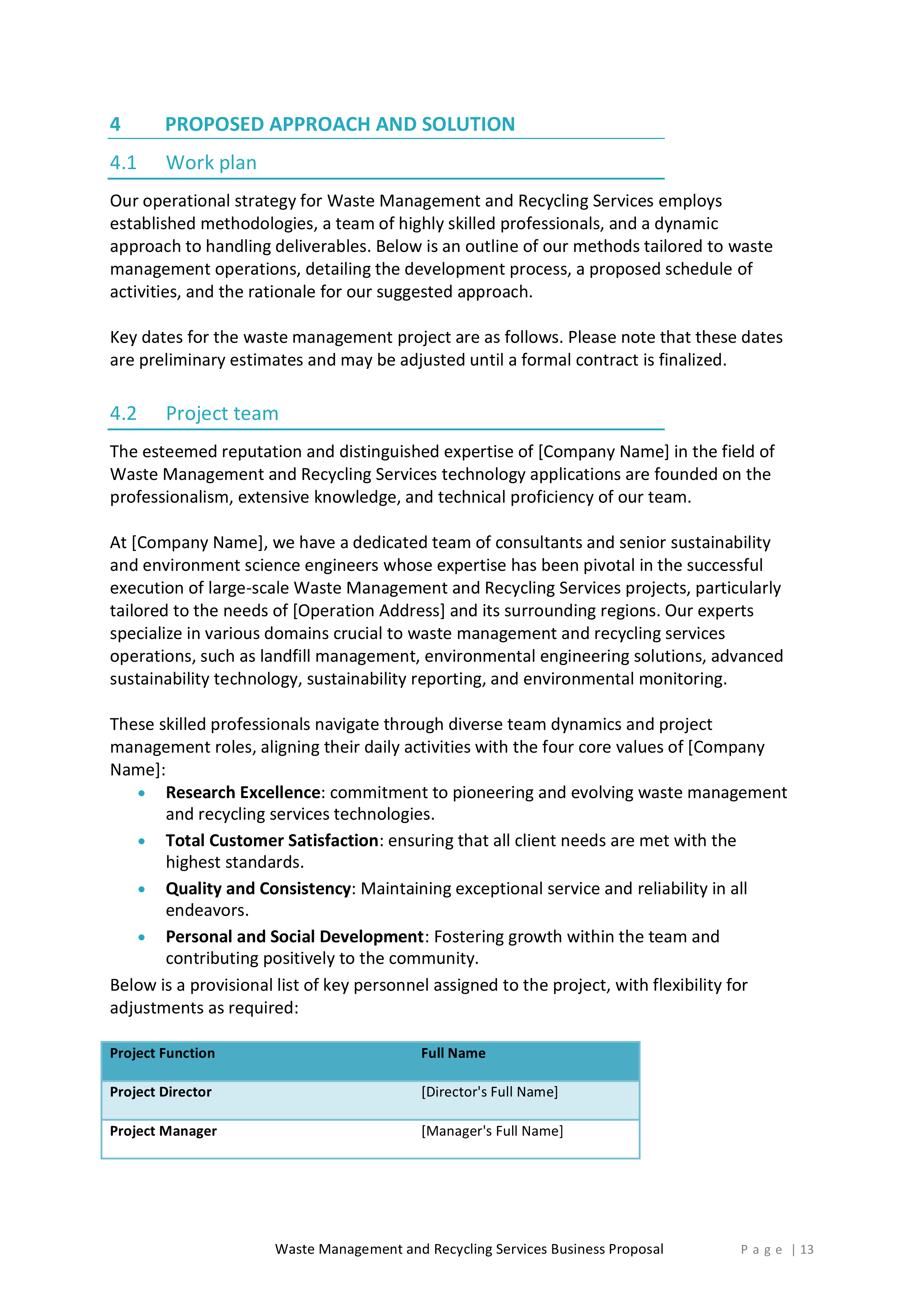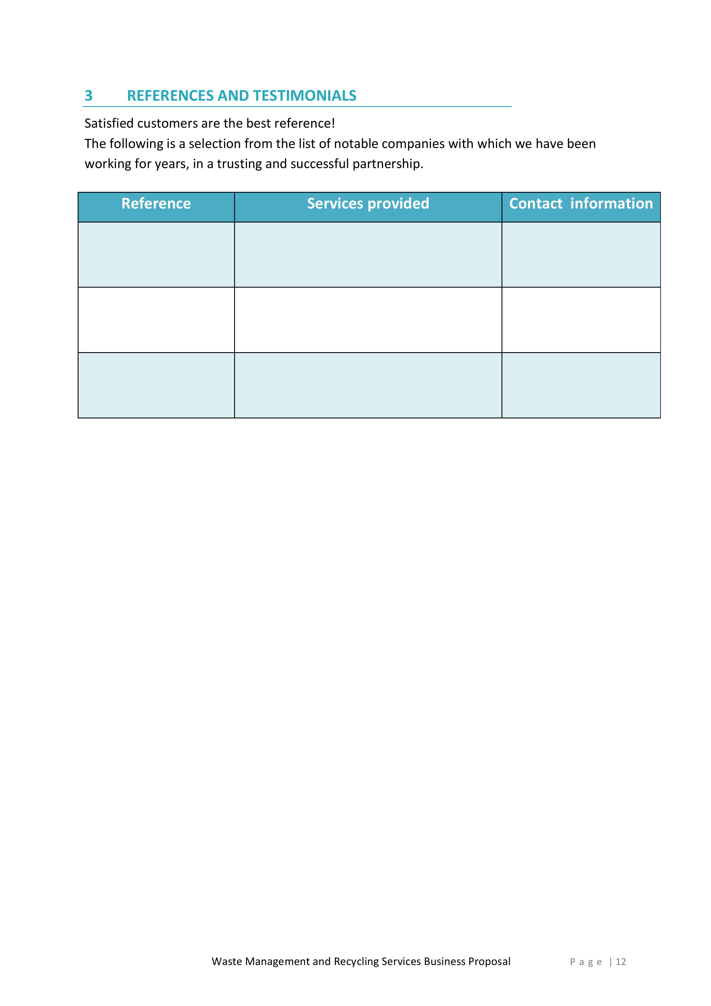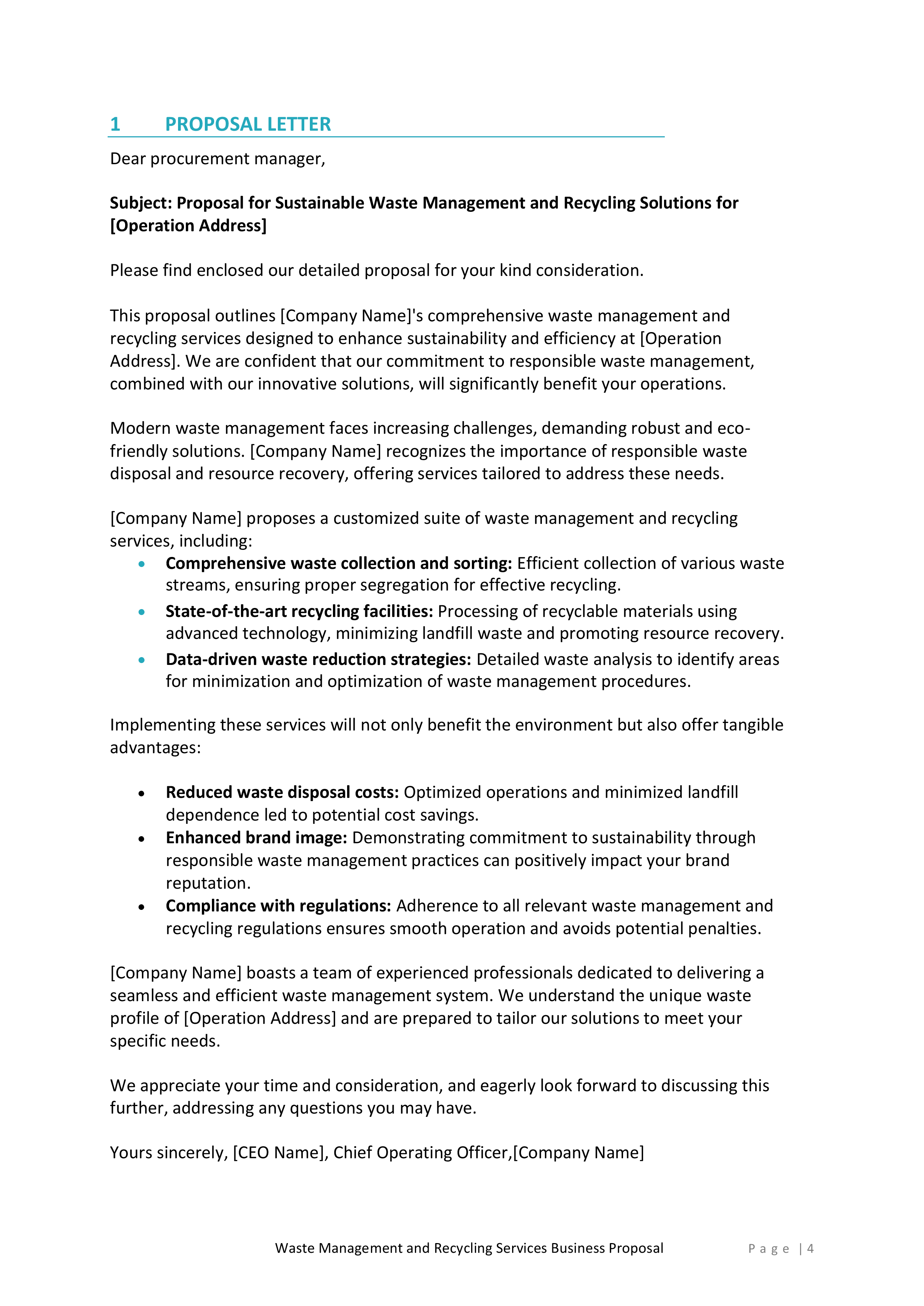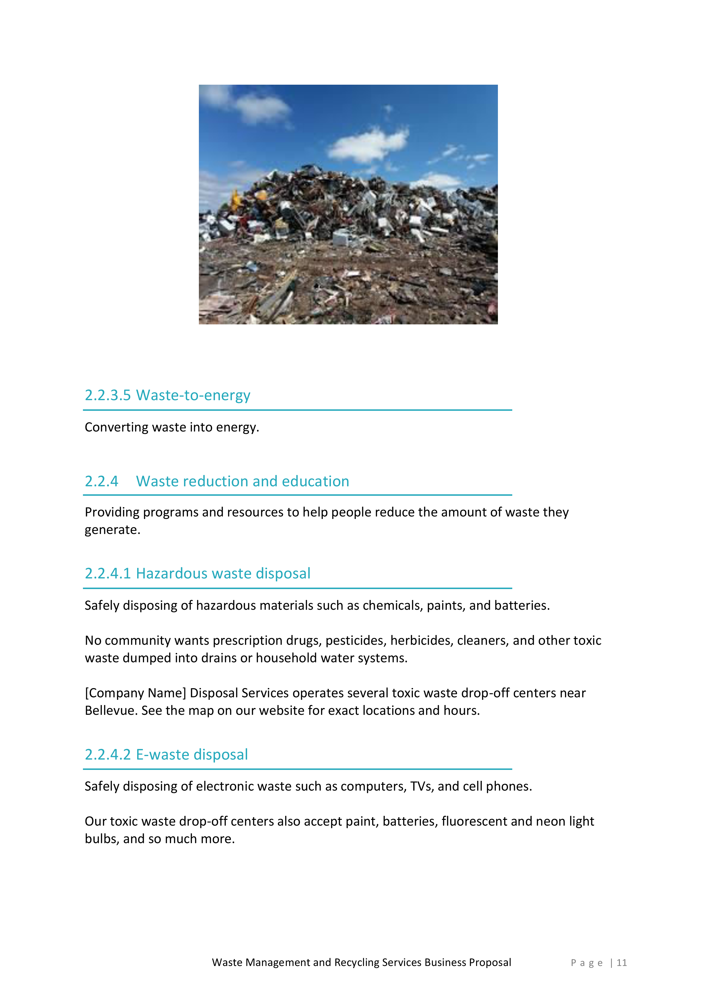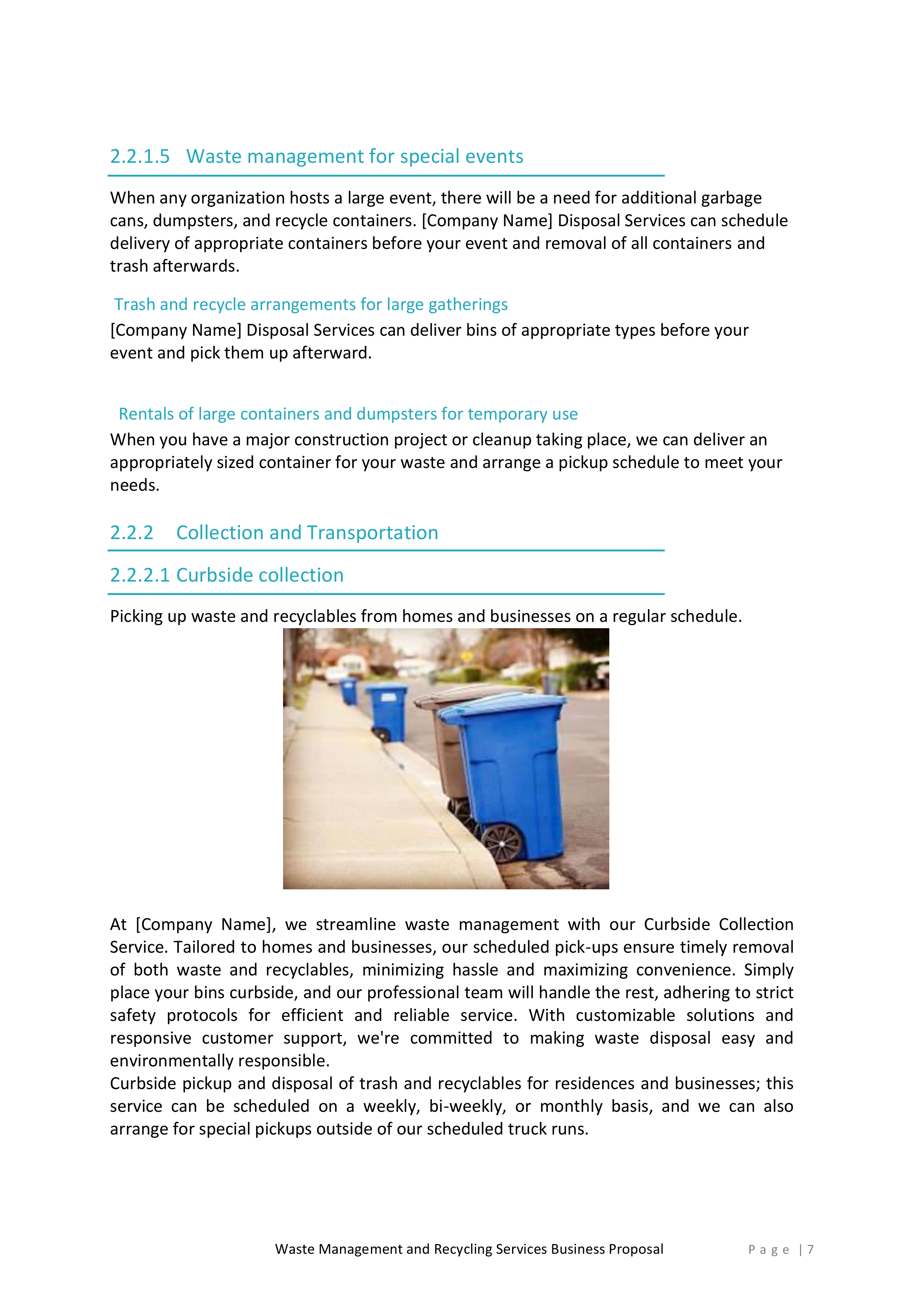 Inside, you’ll find a detailed introduction that highlights your company’s mission, values, and experience in the waste management and recycling industry. This section will help you establish credibility and build trust with potential clients.