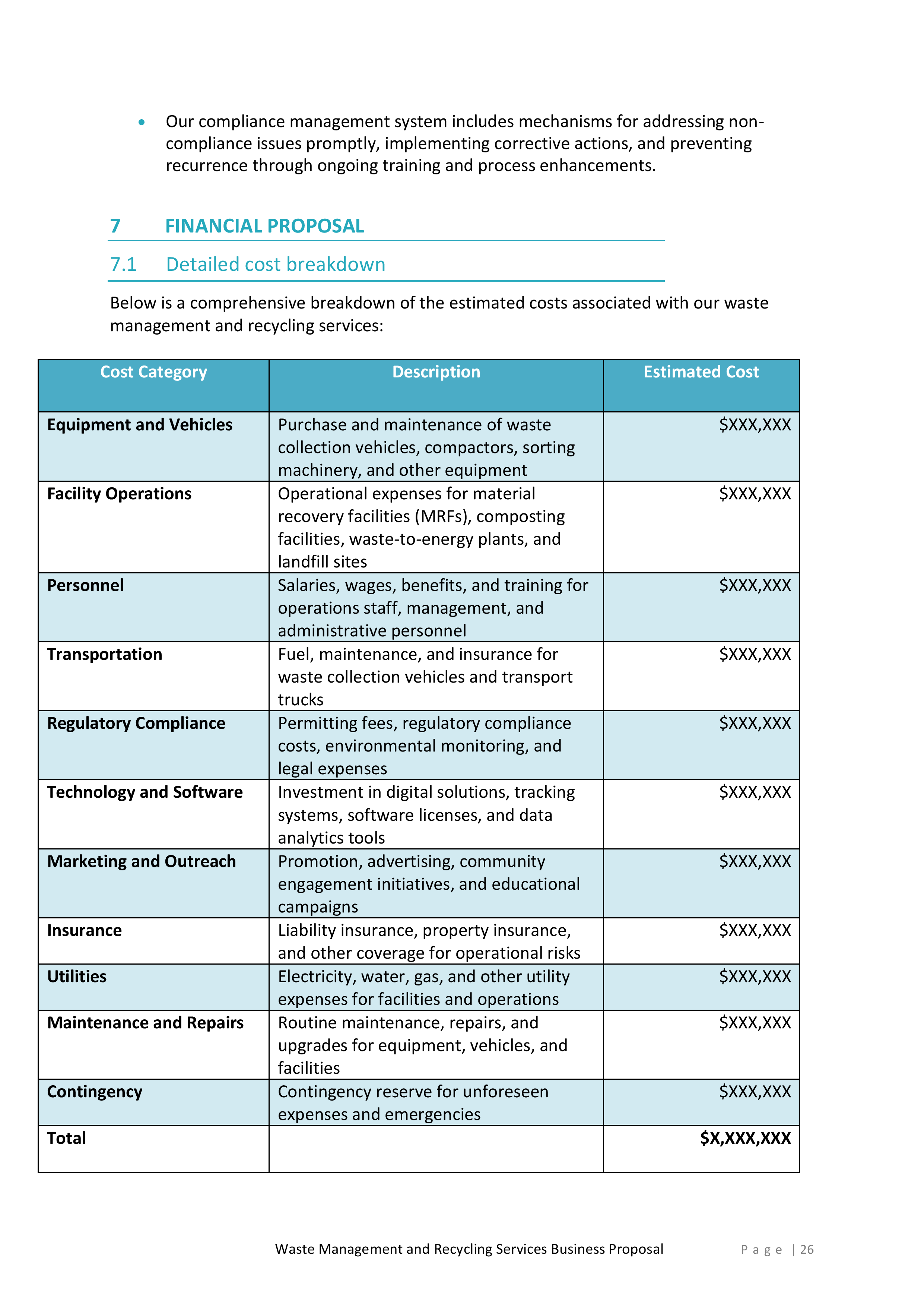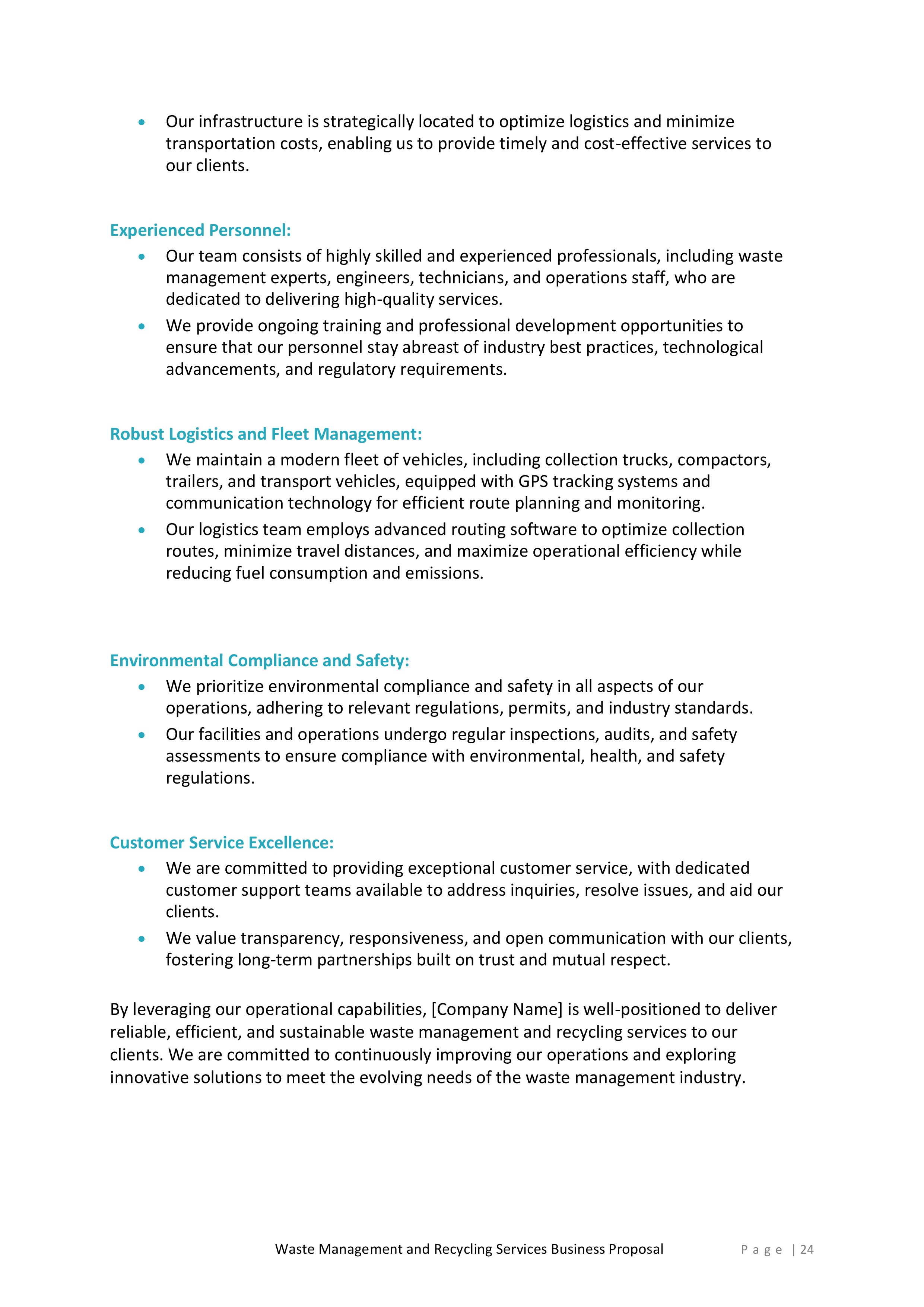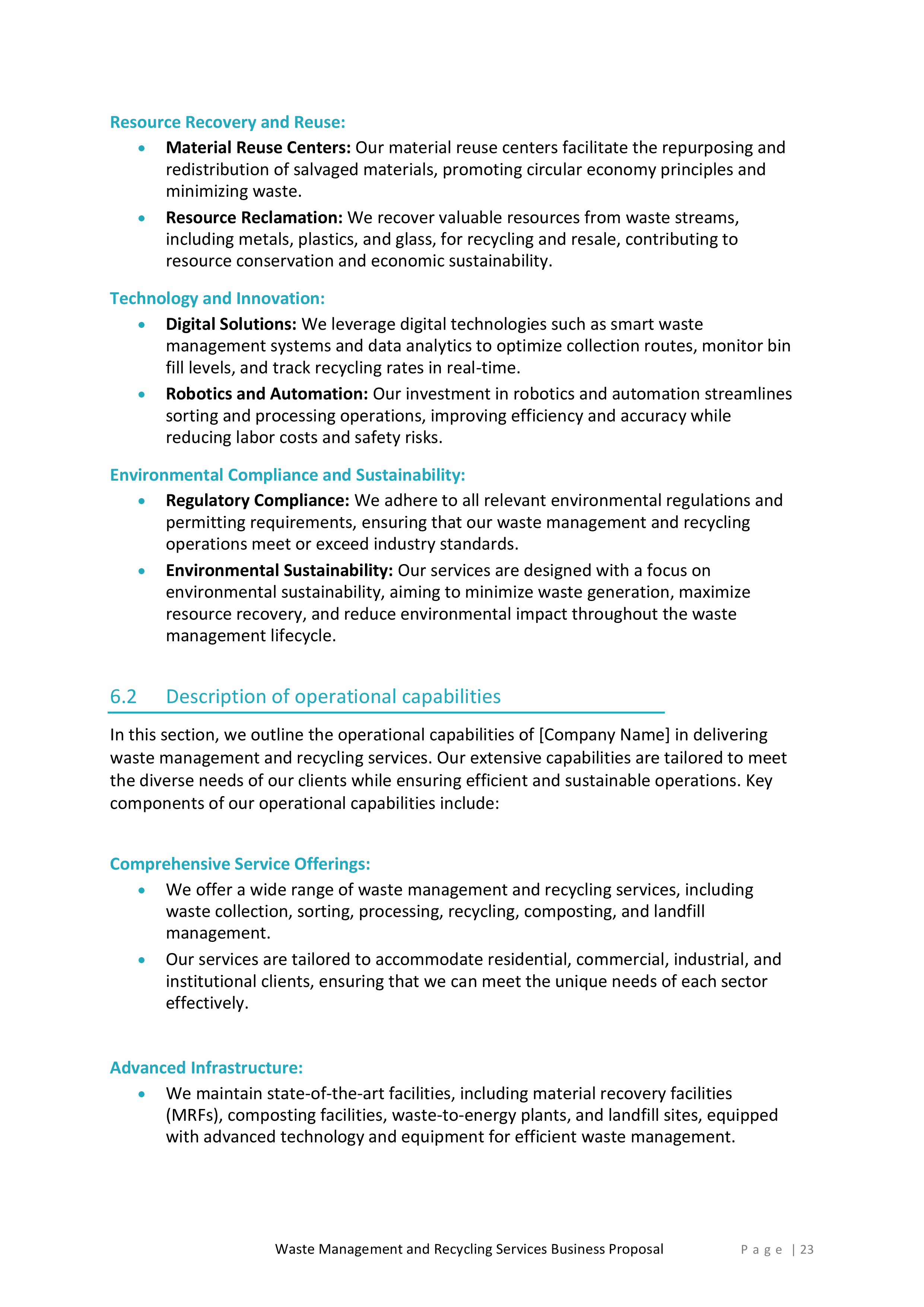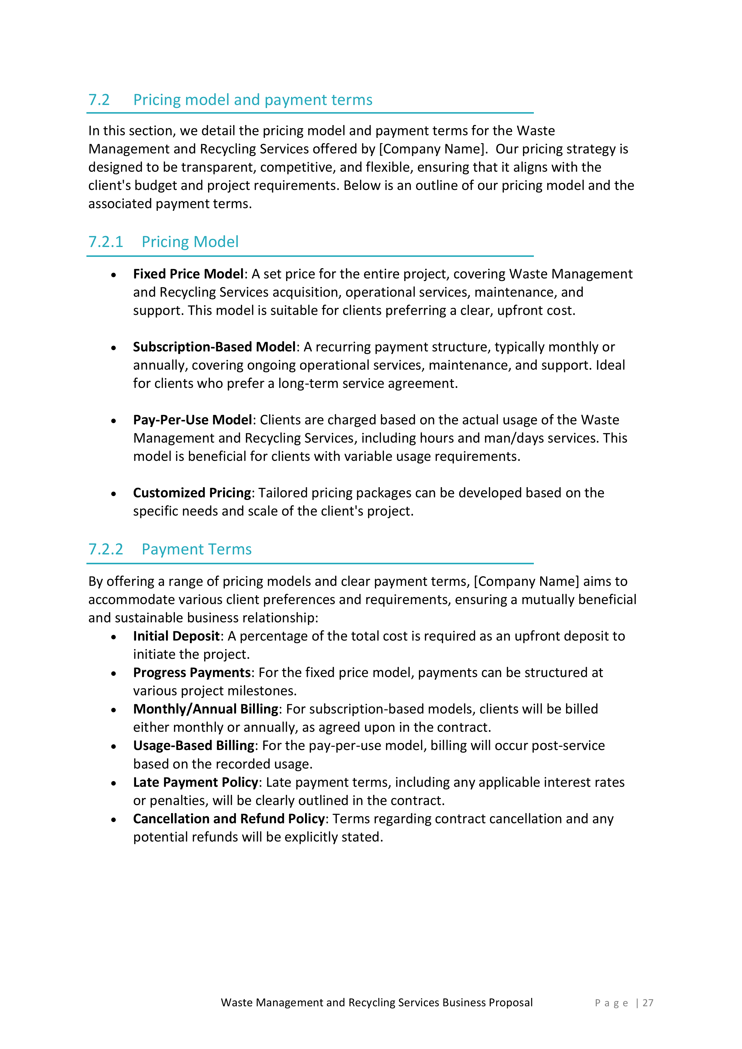 Inside, you’ll find a detailed introduction that highlights your company’s mission, values, and experience in the waste management and recycling industry. This section will help you establish credibility and build trust with potential clients.