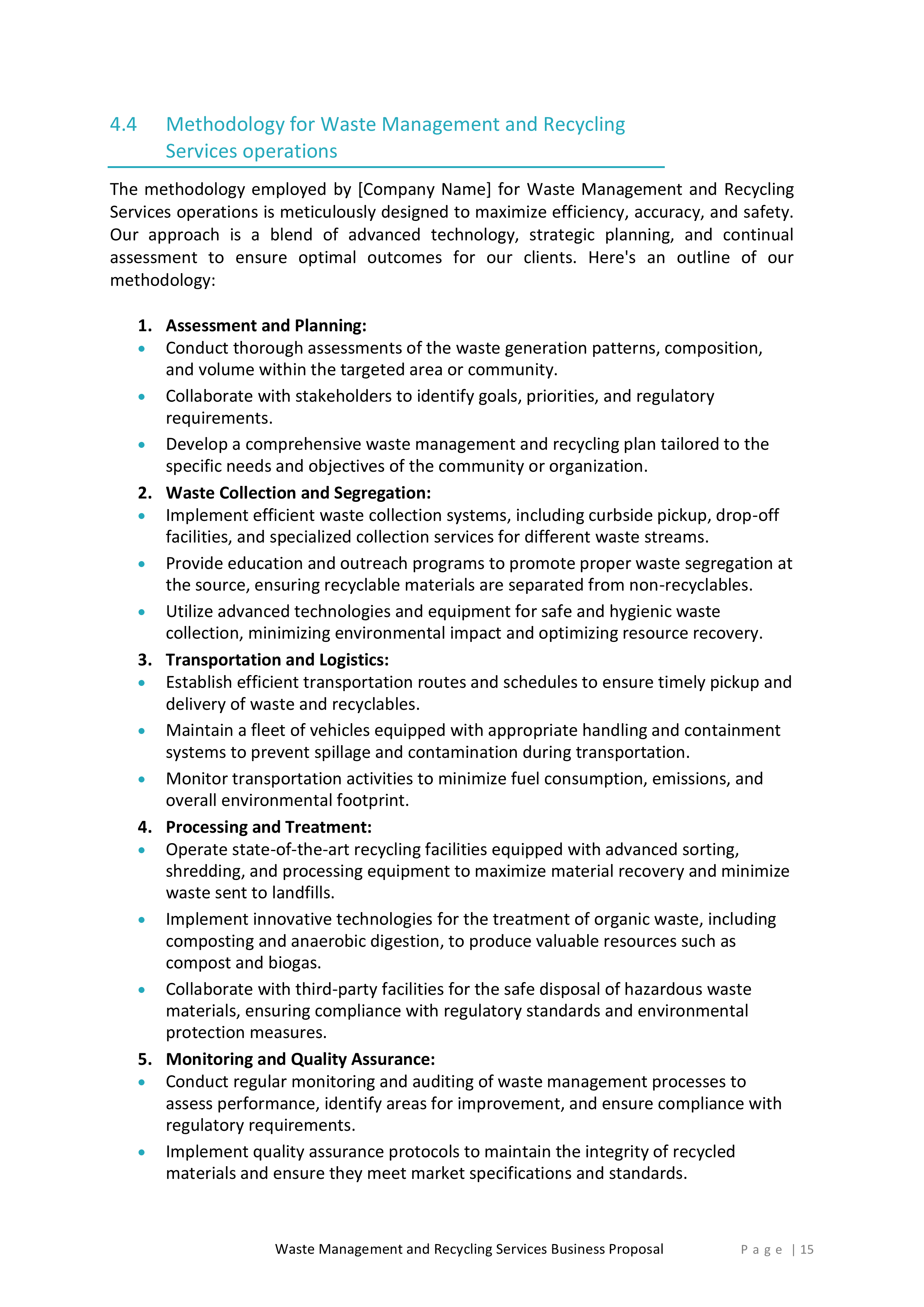 With our Waste Management & Recycling Services Proposal Template, you can save time and effort while creating professional and persuasive business proposals. Download our Word Document today and take your waste management and recycling services to new heights.