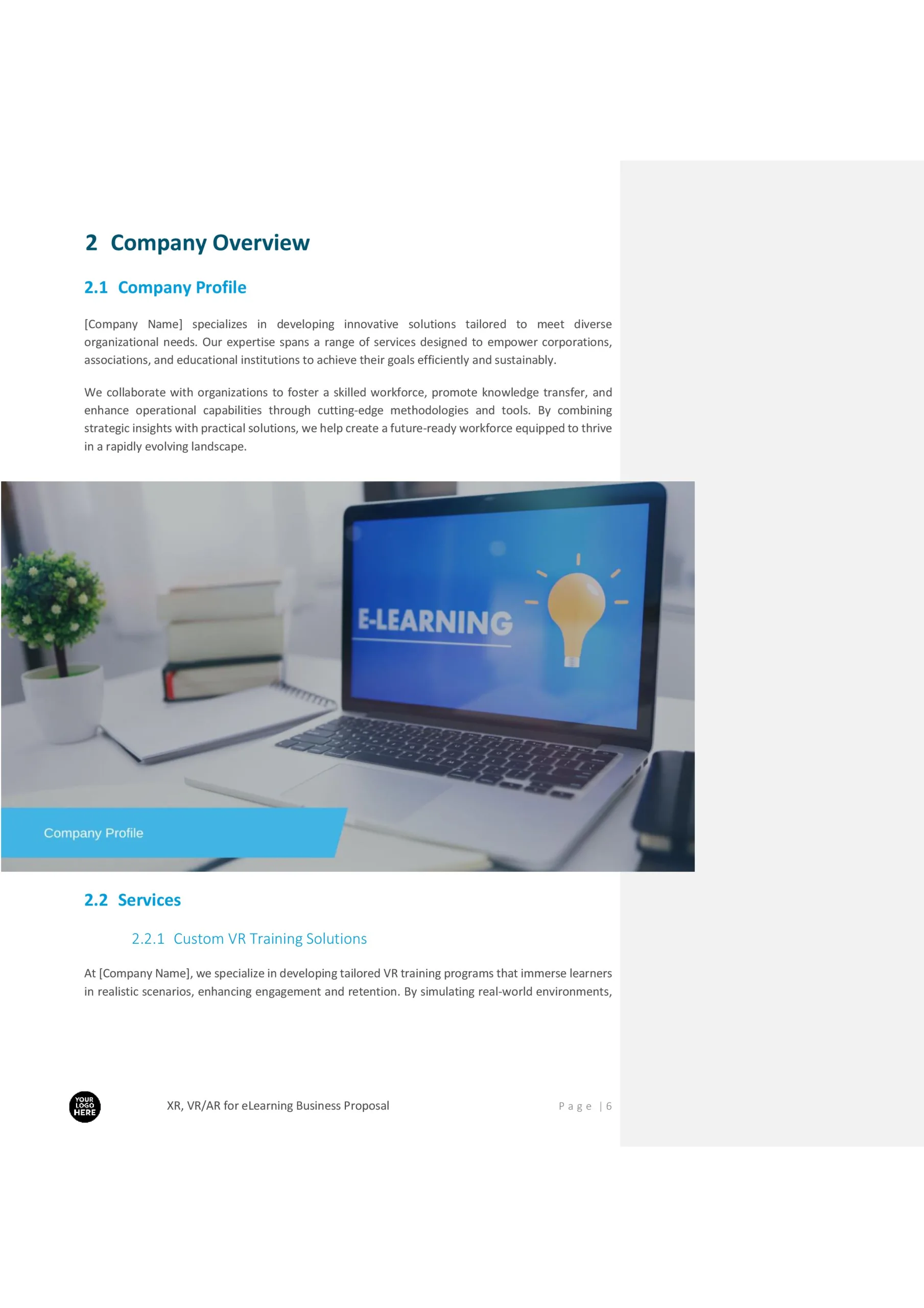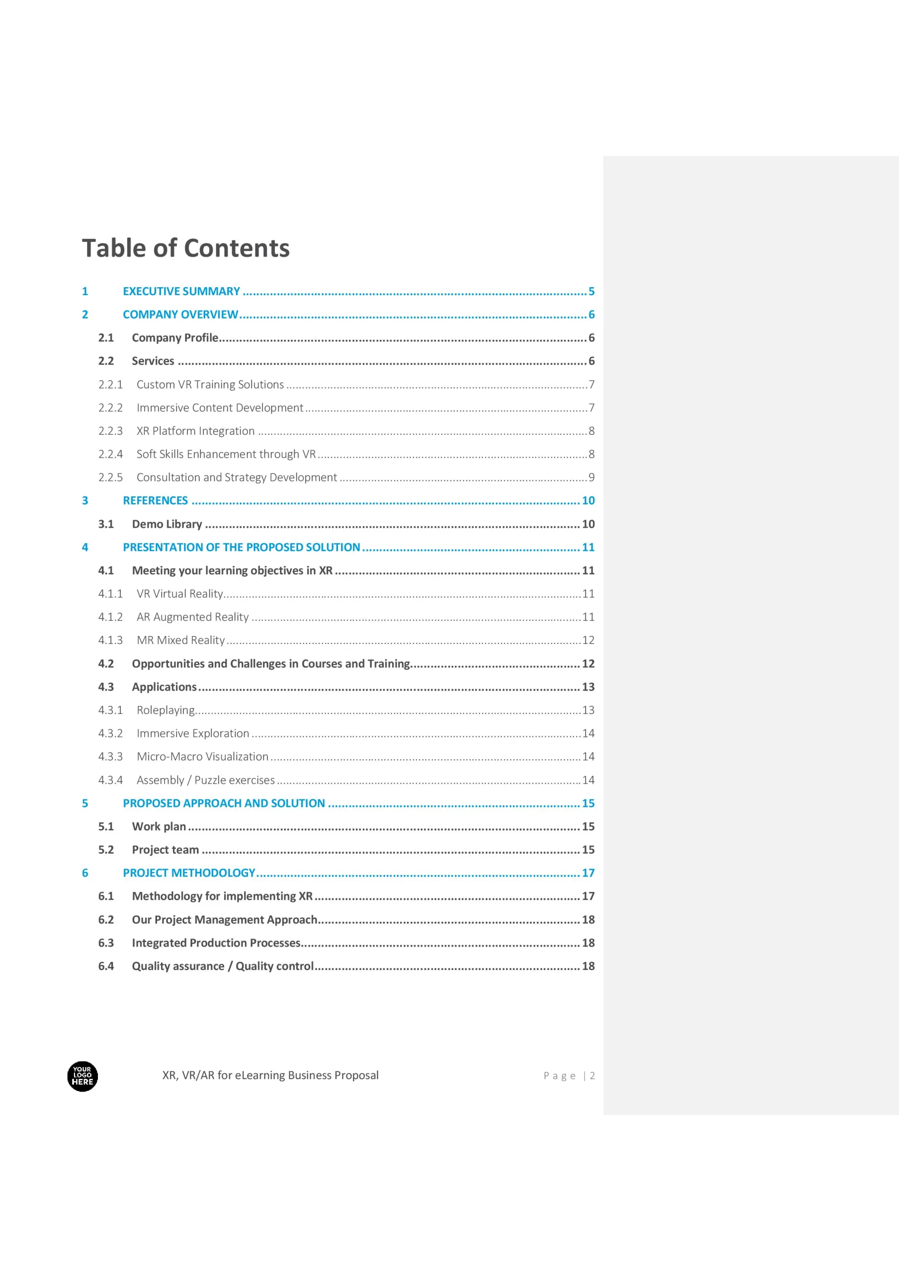 This template ensures that your proposals are tailored, professional, and aligned with client expectations while demonstrating the unique value of XR/VR/AR in eLearning.