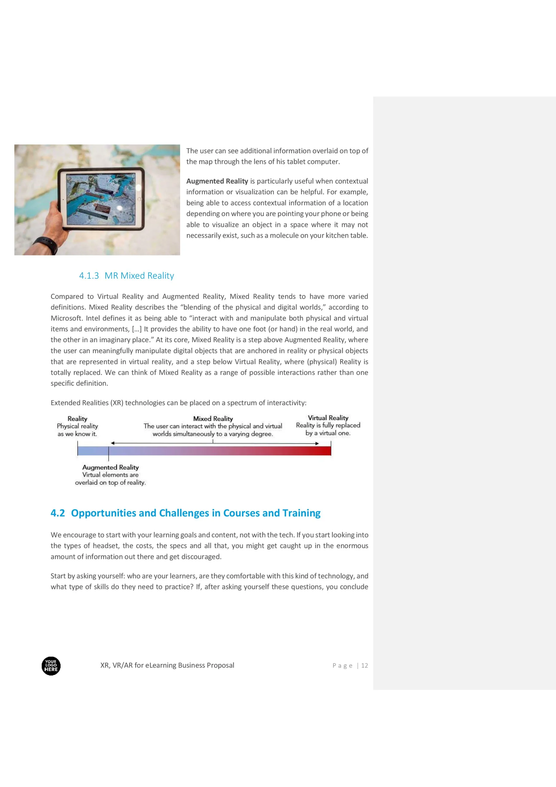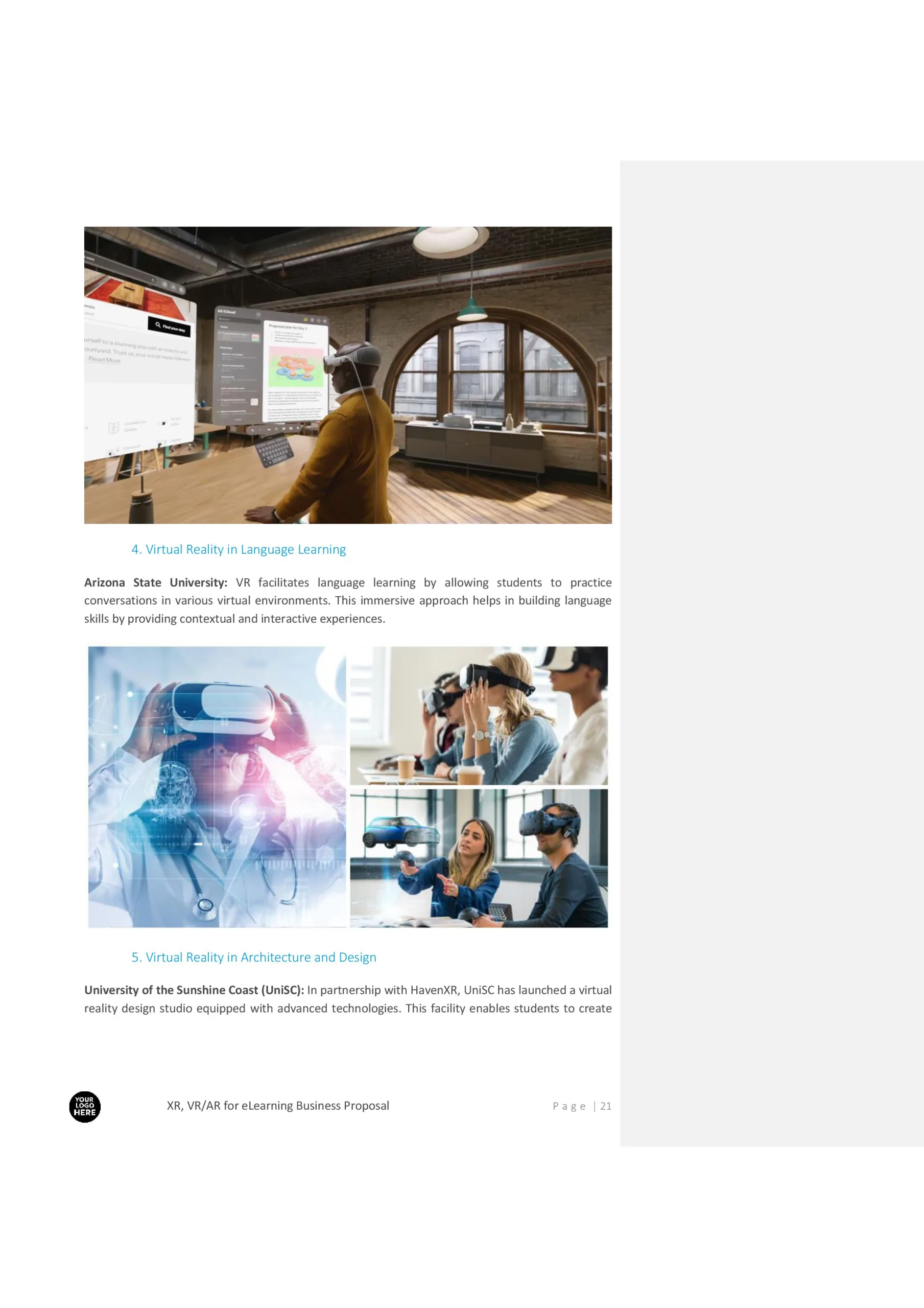 XR (Extended Reality), Virtual Reality, VR/AR for eLearning Business Proposal Template